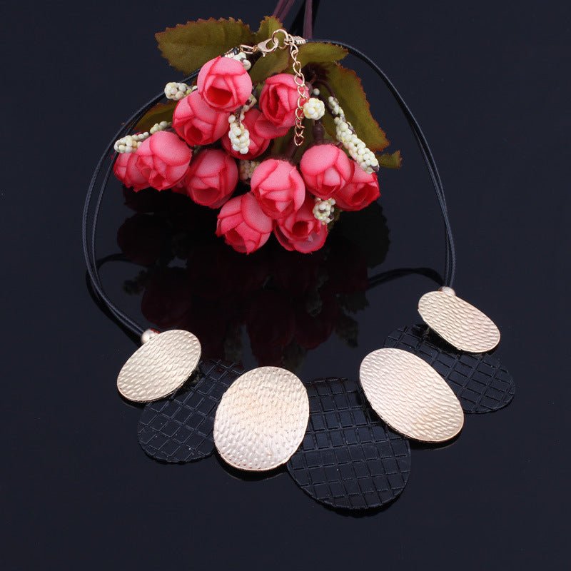 أضف بعض الأطراف القبلية إلى الفرق اليومية أو ليلا مع هذه القلادة ذات الطبقات السوداء والذهبية مصنوعة من سحر معدني عالي الجودة متصل بحبل جلدي.