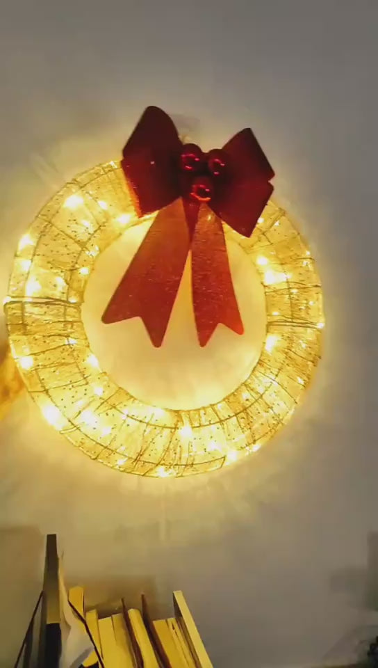 Make a grand statement with this 50-centimeter Christmas garland adorned with LED lights and an oversized bow that exudes luxury. Its vibrant design and festive embellishments transform any room into a festive wonderland. Ideal for chandeliers, mantels, or large doorways, it brings modern flair to traditional holiday décor.