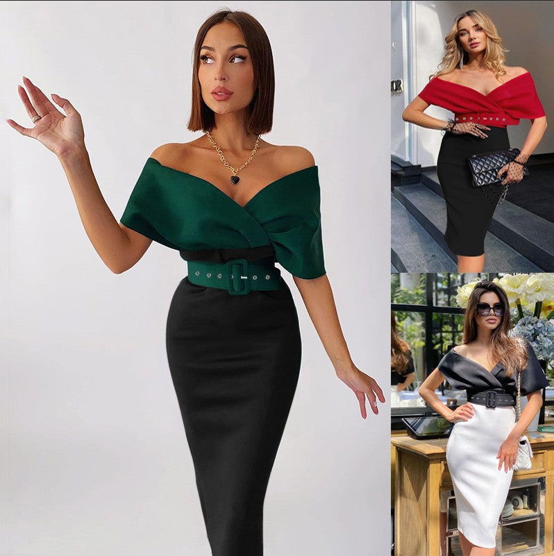 Ziehen Sie die Blicke aller im Raum auf sich, indem Sie das von Old Hollywood inspirierte schulterfreie Damenkleid mit dramatischem Oberteil und schmeichelhaftem Bleistiftrock in Farbkombinationen Ihrer Wahl tragen.