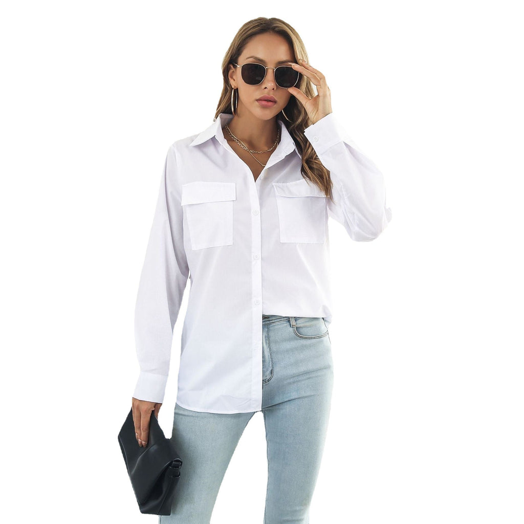 Halten Sie Ihren täglichen Stil zurückhaltend und entspannt mit diesem asymmetrischen Umlegekragen für Damen mit Knöpfen und Brusttaschen. Es zeichnet sich durch eine lange und eine kurze Seite aus, die ihm einen avantgardistischen Look verleihen.