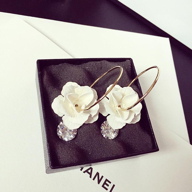 Verleihen Sie Ihren lässigen Tageslooks etwas Glanz und Glamour mit diesen blumigen Emaille-Ohrringen mit funkelnden Steinen. Die Ohrringe sind mit großen Blumenblüten verziert, von denen klare, glitzernde Steine ​​herunterhängen.