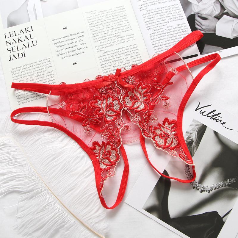 Transparente Crotchless-Höschen mit Blumenapplikationen