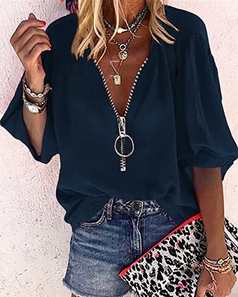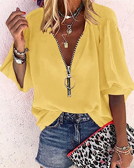 Heben Sie sich mit diesem auffälligen, langärmligen Damenoberteil mit V-Ausschnitt und Reißverschluss hervor. Es kommt in verschiedenen Farben.