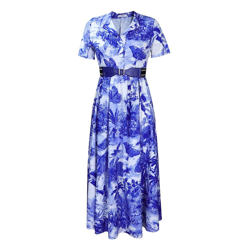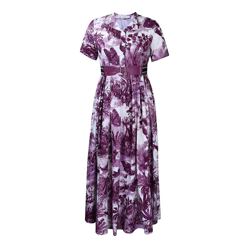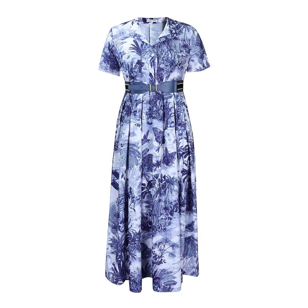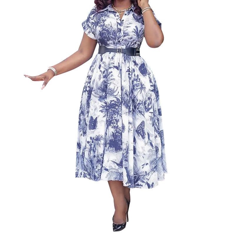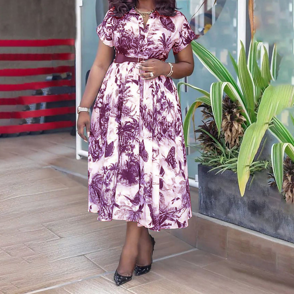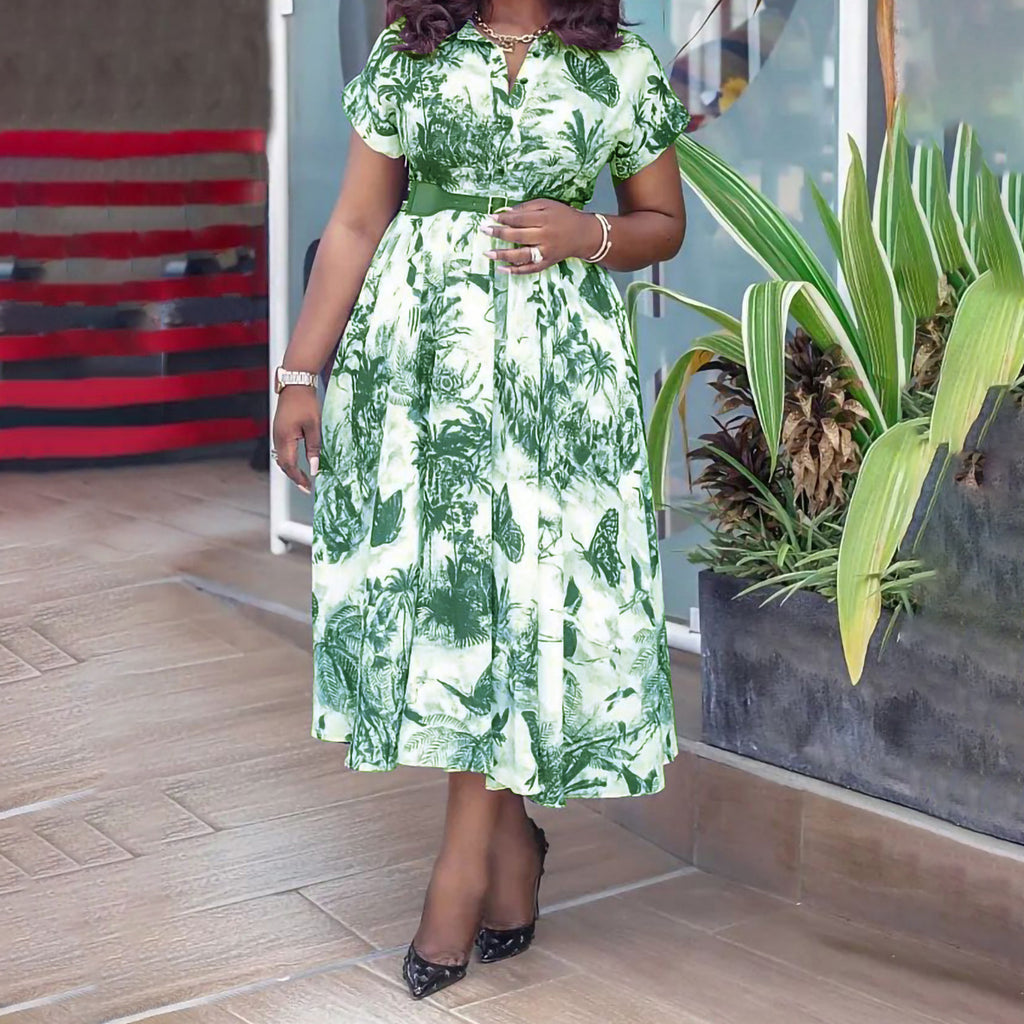 Bringen Sie die Atmosphäre der Tropen in Ihr Ensemble, indem Sie das A-Linien-Kleid mit botanischem Muster für Damen mit Kragen und kurzen Ärmeln tragen. Das Kleid ist in den Farben Ihrer Wahl in verschiedenen Blau-, Lila- und Grüntönen erhältlich.