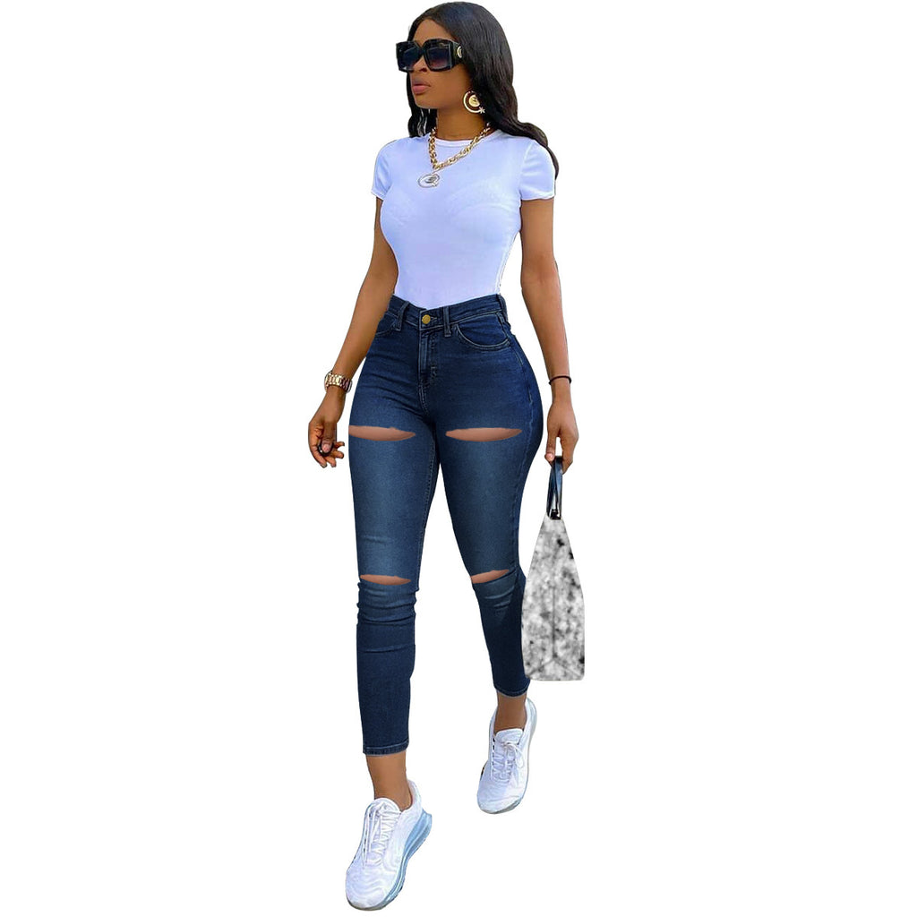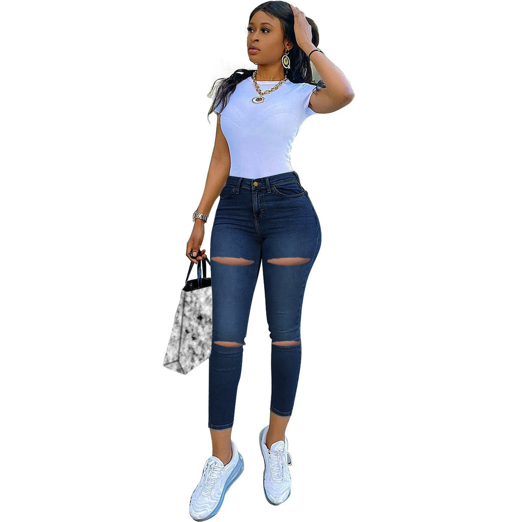 Skinny Jeans für Damen mit hoher Taille und Rissen