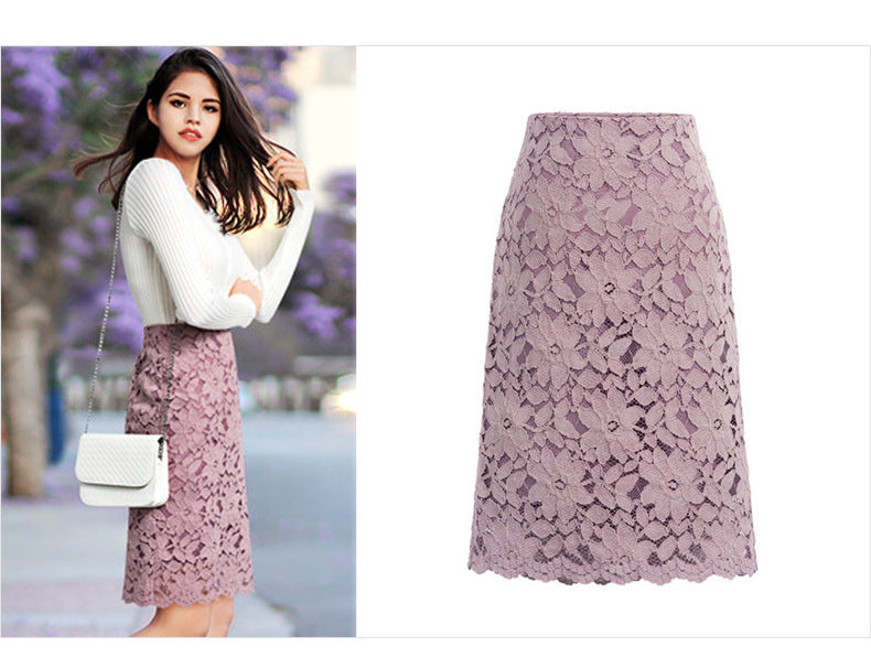 Verleihen Sie Ihren Lieblingsblusen einen schicken Look, wenn Sie sie mit diesem halbtransparenten Damen-Bleistiftrock mit Spitze und Midi-Saum kombinieren. Dieser Spitzenrock ist in einer Farbe Ihrer Wahl erhältlich, die Sie mit jedem Oberteil kombinieren können.