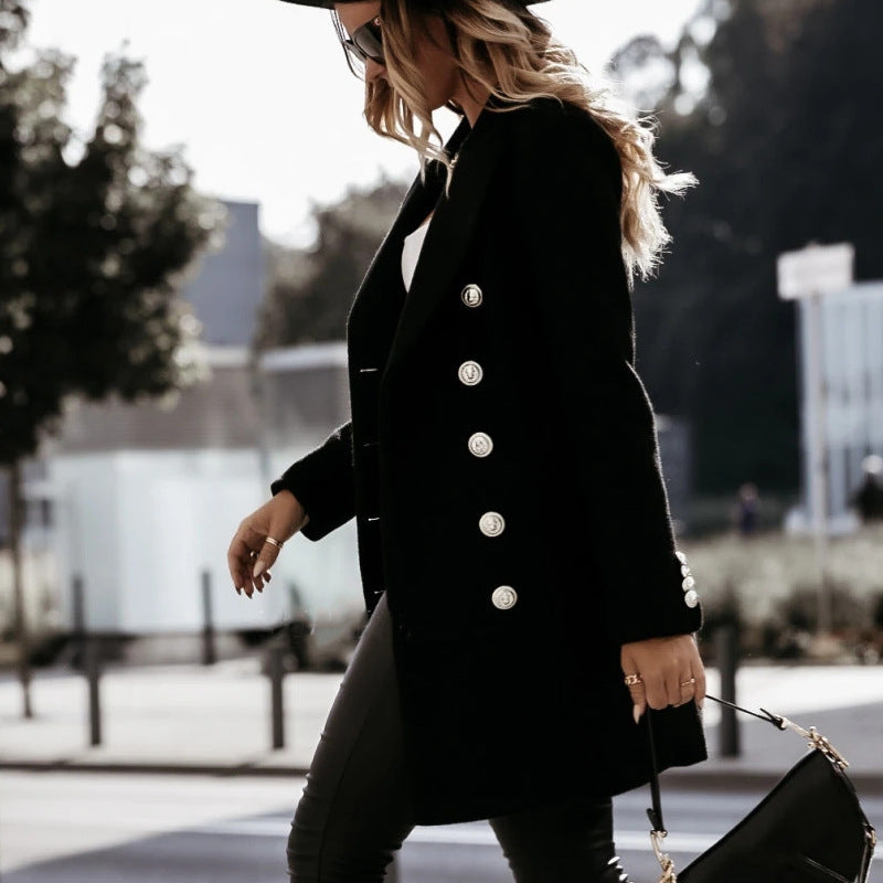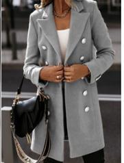 Verleihen Sie Ihren Ensembles sowohl beruflich als auch informell den letzten Schliff mit diesem schicken Damenmantel mit dekorativen Knöpfen und zweireihigem Kragen. Es ist in verschiedenen Farben erhältlich, um Ihrem Stilempfinden gerecht zu werden.