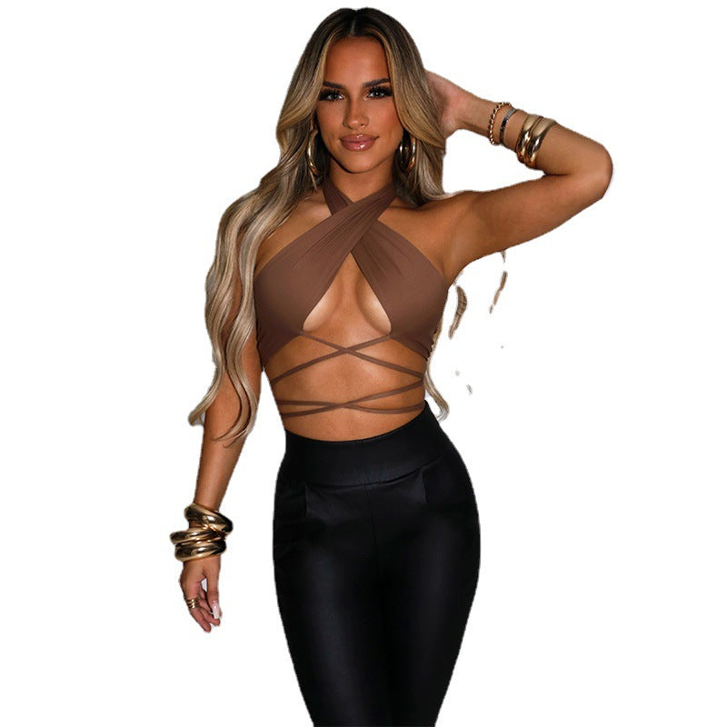 Sieh in der Flirty verlockend aus und enthülle die Neckholder -Top der Frauen mit Riemchendetails. Dieses seidige glatte Oberteil ist atmungsaktiv und weich und in neutralen Farboptionen erhältlich.