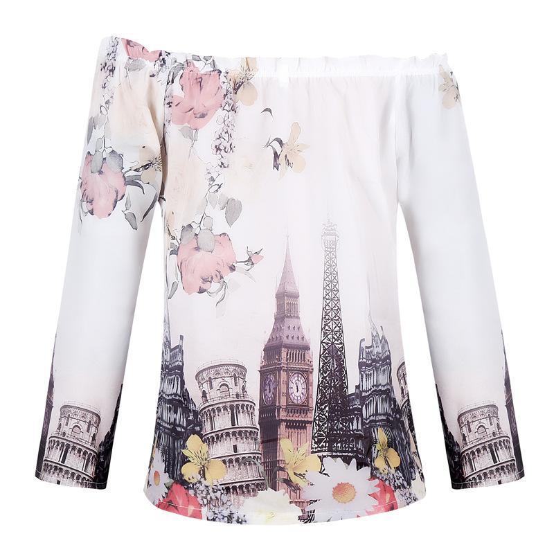 Träumen Sie den Tag davon und stellen Sie sich vor, Sie wären in allen berühmten Städten Europas, wann immer Sie Ihr Spiegelbild mit der schulterfreien European Escape-Bluse sehen.