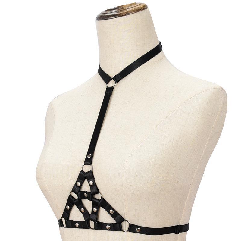 Leichtes Bondage sah noch nie so gut aus wie in diesem Exposed Love Bondage Body Harness mit einem Halsband und einem dreieckigen Halsband, das unter der Brust sitzt.