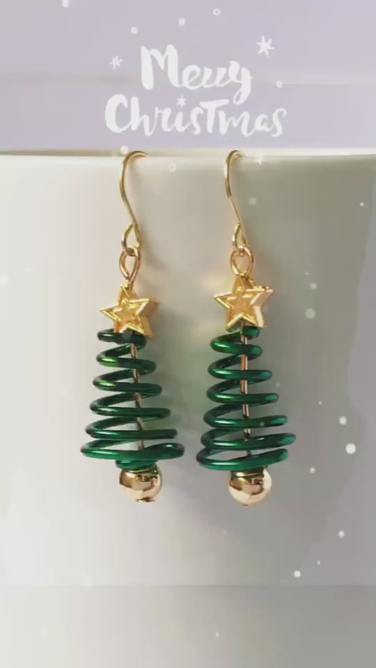 Twirl into the season with these festive spiral Christmas tree drop earrings complete with a golden stud accent. Their unique spiral design creates an eye-catching and dynamic festive look. Ideal for making a sophisticated yet playful statement, they serve as the perfect accessory for holiday parties.