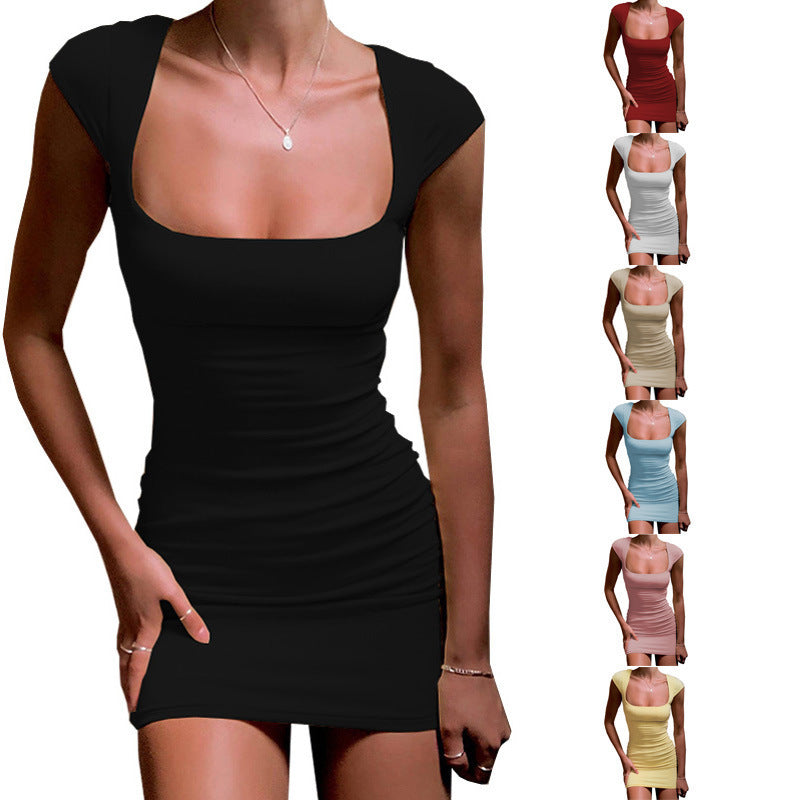 Zeigen Sie Ihre Figur mit diesem eng anliegenden, figurbetonten, figurbetonten Kleid mit eckigem Ausschnitt. Der weiche Stoff schmiegt sich an Ihre Kurven, um sie zu betonen, und verfügt über kurze, eckige Ärmel, die den eckigen Ausschnitt betonen.