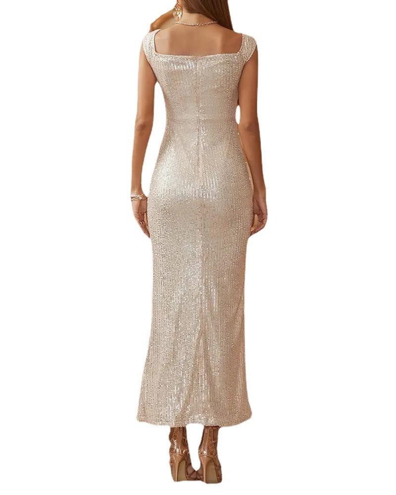 Ziehen Sie an Ihrem nächsten Abend die Blicke auf sich, indem Sie das formschlüssige Maxikleid mit Rüschenausschnitt und Oberschenkelschlitz für Damen tragen, das mit Rüschen und Kreuzen am Ausschnitt verziert ist. Es verfügt über einen Oberschenkelschlitz, der hoch am Bein ansteigt.