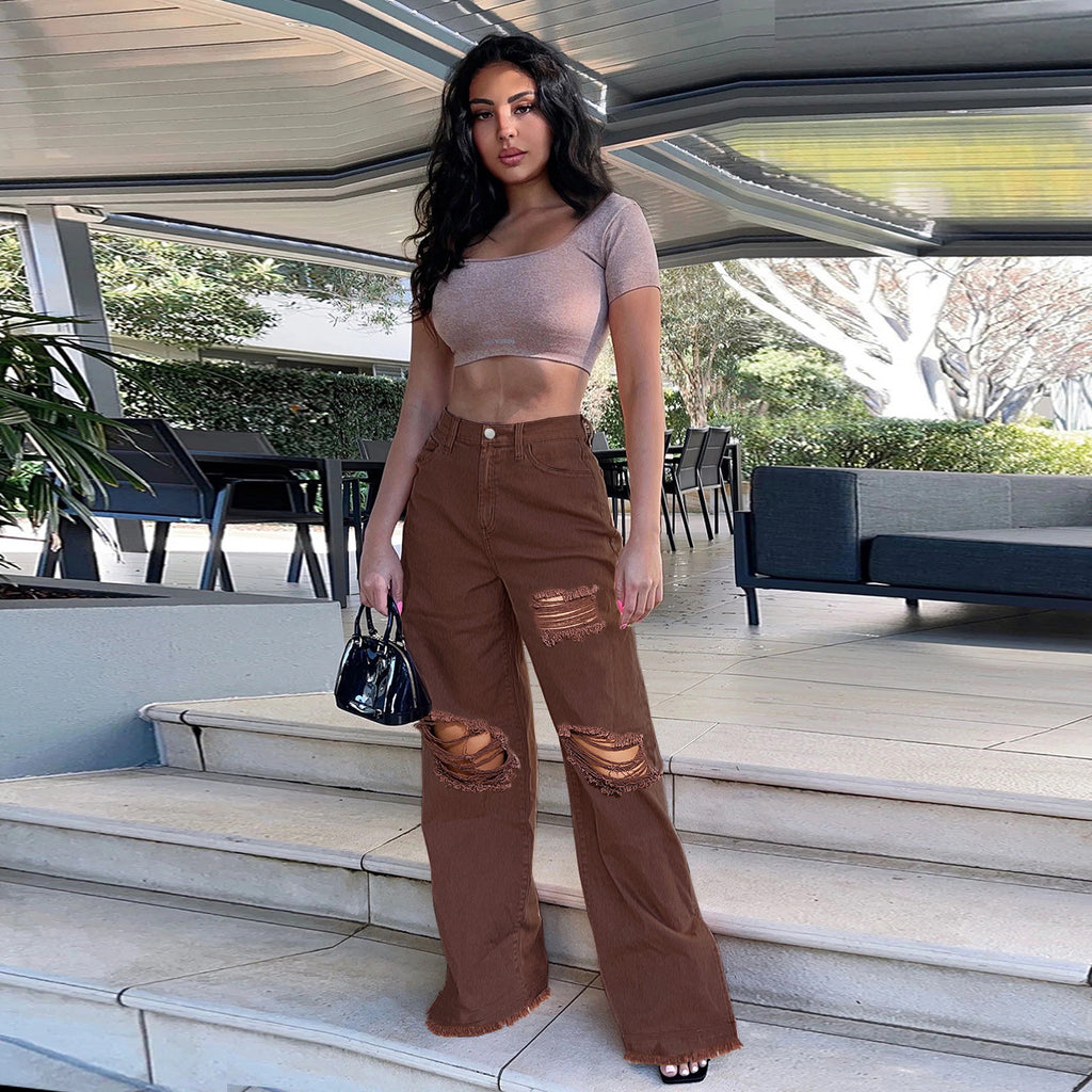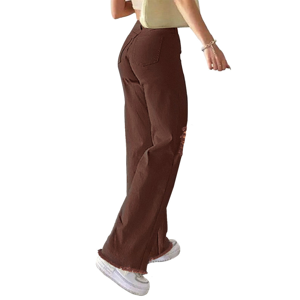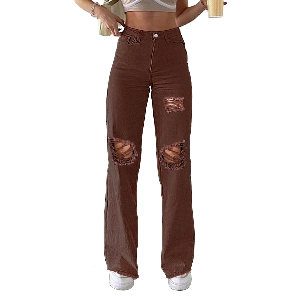 Zerrissene Damenjeans mit hoher Taille in erdigem Braun