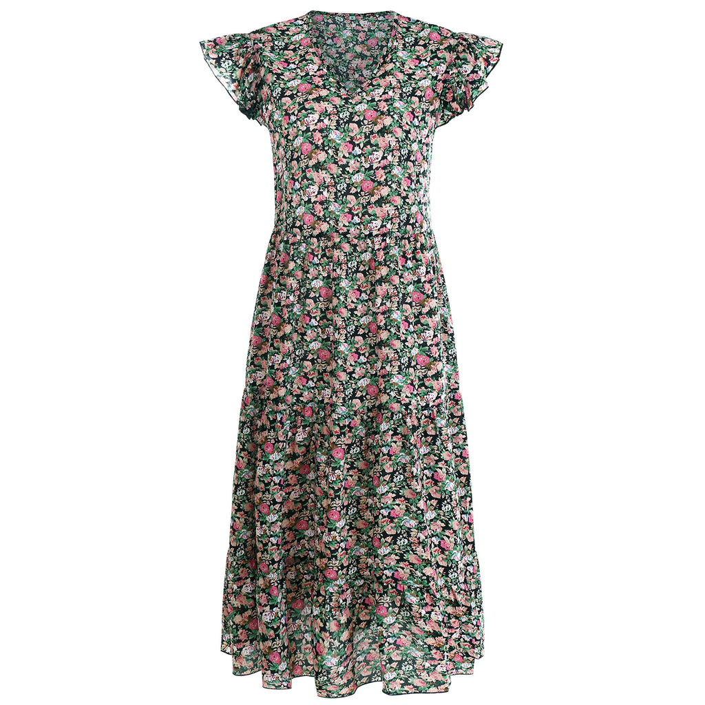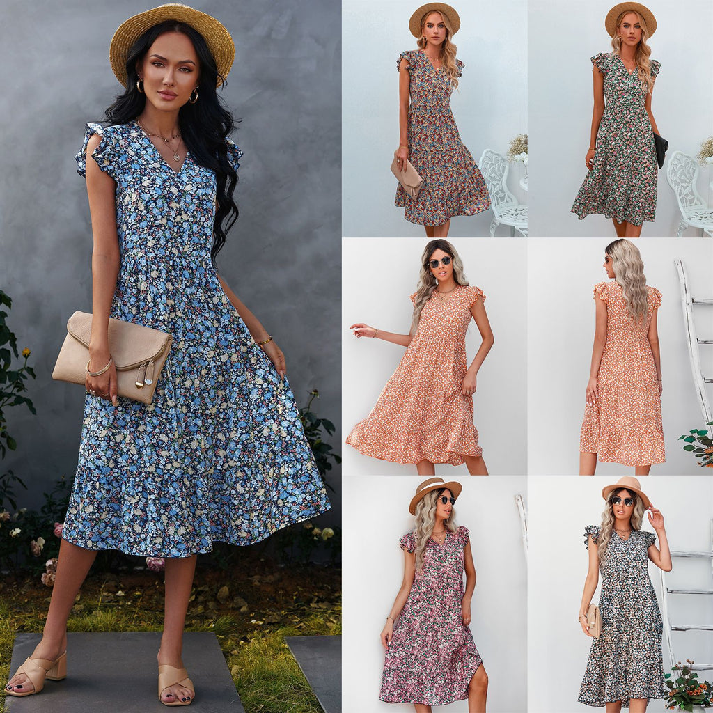 Drücken Sie sich für Frühling oder Sommer im Kurzarm Midi -Kleid der Frauen mit kurzem Ärmel. Dieses leichte und luftige Kleid ist mit mehreren Variationen zur Auswahl erhältlich.