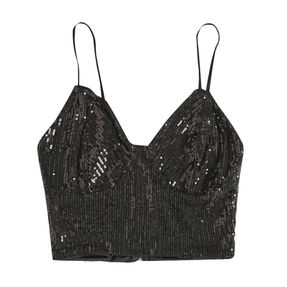 Geben Sie jedem Outfit, der das mit Spaghetti -Gurten mit Schwarz oder Weiß ausgewählte Outfit mit dem mit Spaghetti -Gurten entsprechenden, mit Spafen mit Pailletten bedeckten Erntedach mit einem funkelnden Top -Übereinstimmung einen funkelnden Passfaktor entspricht.