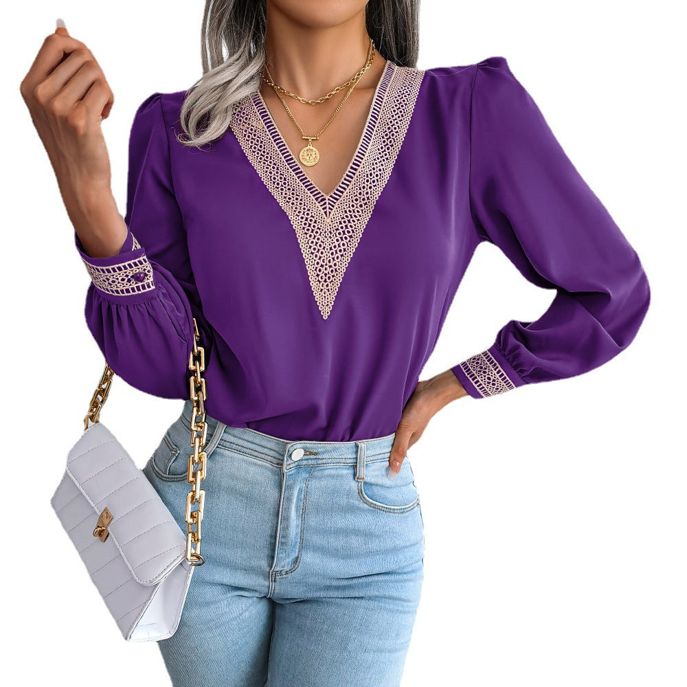 Aktualisieren Sie Ihre Freizeit-Ensembles mit der langärmligen Strickbluse mit V-Ausschnitt für Damen, die ein einfarbiges Design mit einem akzentuierten Strickrand entlang des V-Ausschnitts des Oberteils aufweist. Es ist in fünf verschiedenen Farboptionen erhältlich.