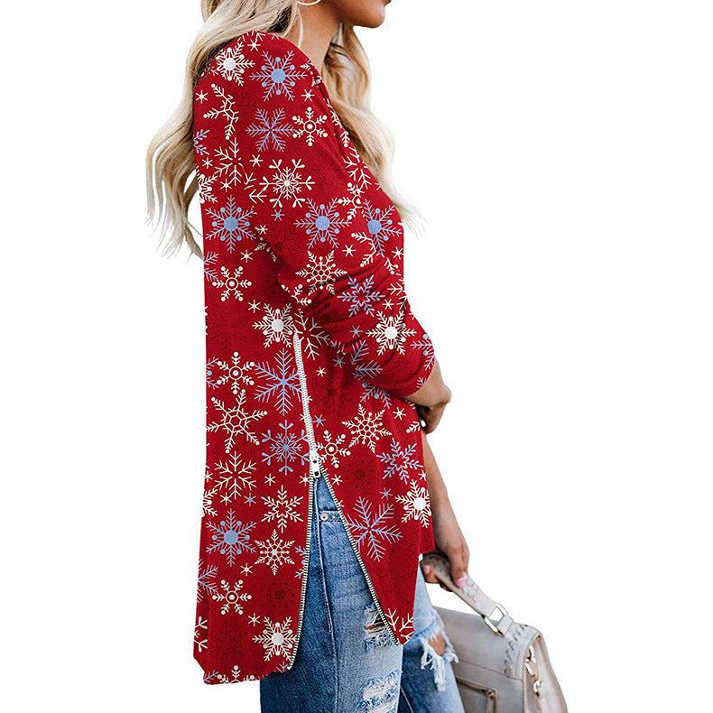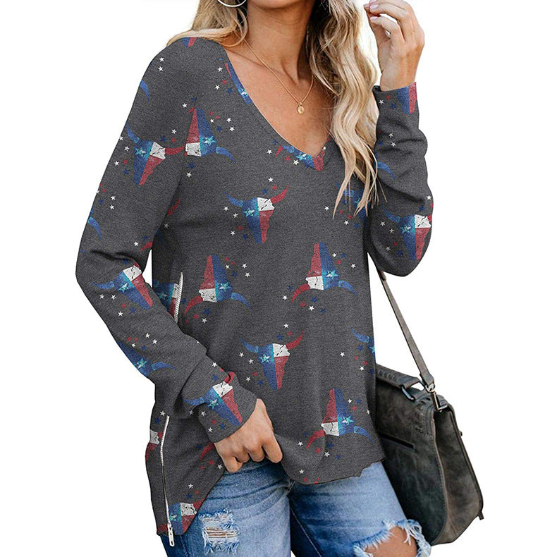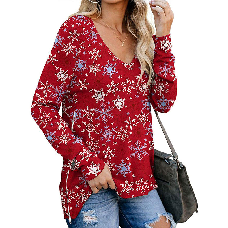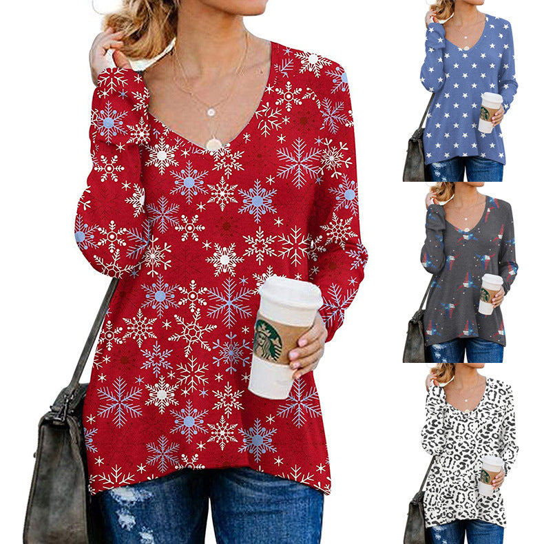Aktualisieren Sie Ihre Jeans und Leggings mit dem gemusterten Langarm-Top mit schickem V-Ausschnitt. Mit dem langen Saum und den locker sitzenden Ärmeln eignet sich das Top perfekt zum Faulenzen und ist in verschiedenen Farb- und Musteroptionen erhältlich.