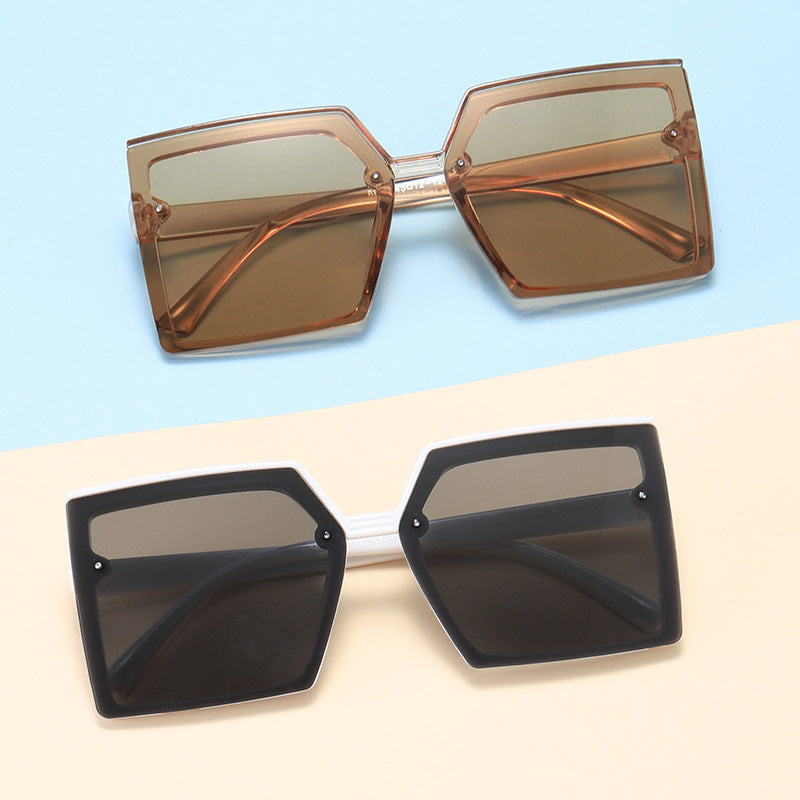 Für eine wirklich mutige und moderne Art des Accessoires schlüpfen Sie in diese Geometric Boxy Full Plastic Rim Sonnenbrille mit einer eckigen Form und einer brückenlosen Nase, die sie außergewöhnlich zeitgemäß und frisch macht.