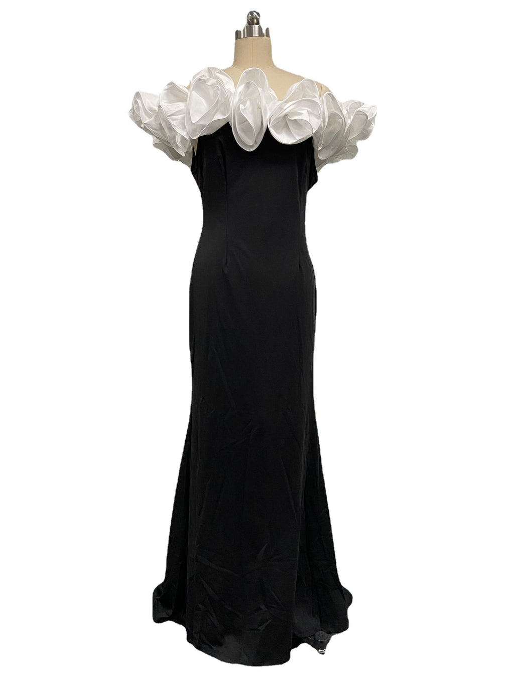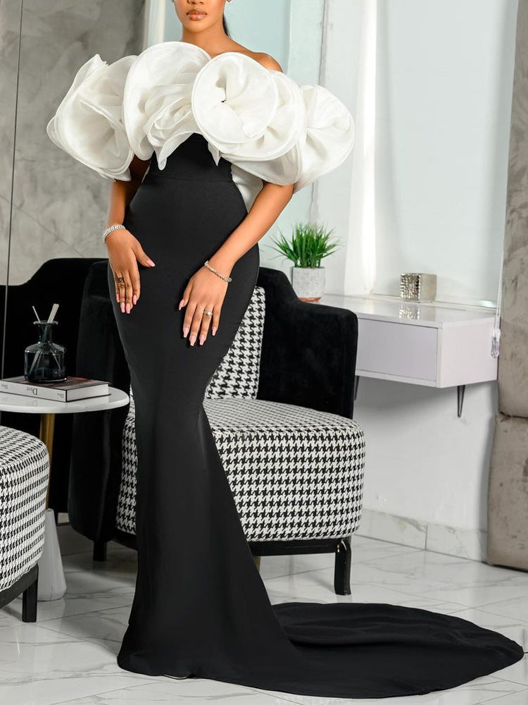 Machen Sie eine mutige Aussage, indem Sie das geschwollene weiße Blumenmieder für Frauen mit dem figurbetonten schwarzen Maxikleid und dem Trail tragen, der aussieht, als wäre er direkt vom Laufsteg gekommen. Sein dramatischer Farbkontrast trägt zu seinem Aussehen bei.