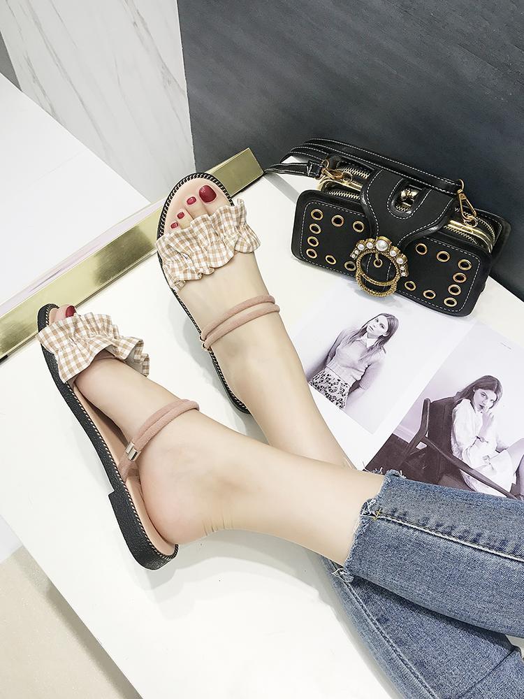 Flache Schuhe mit Gingham-Print und Rüschenriemen