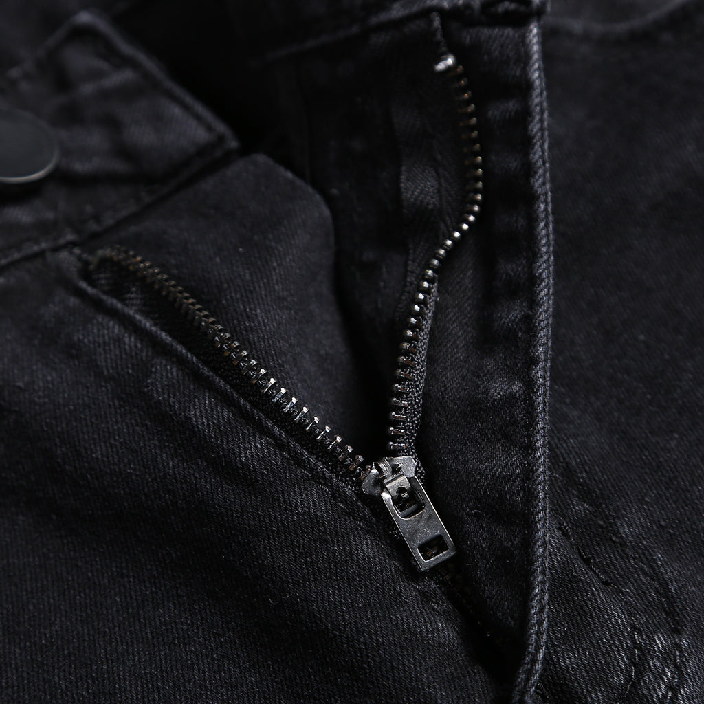 Farbspritzer zieren die Oberschenkel und Schienbeine der Men's Paint Splatter Dark Denim Jeans und verleihen ihnen einen Hauch von Farbe. Entlang der Knie befinden sich absichtliche Risse, um der Jeans einen getragenen Look zu verleihen.