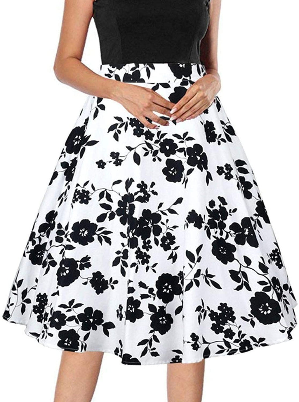 Verleihen Sie Ihren lässigen Sommer-Lieblingslooks etwas tropisches Flair in diesem rot-grünen Rock mit botanischem Muster und Aquarell-Blumenmuster und hoher Taille, der hoch auf der Taille sitzt.