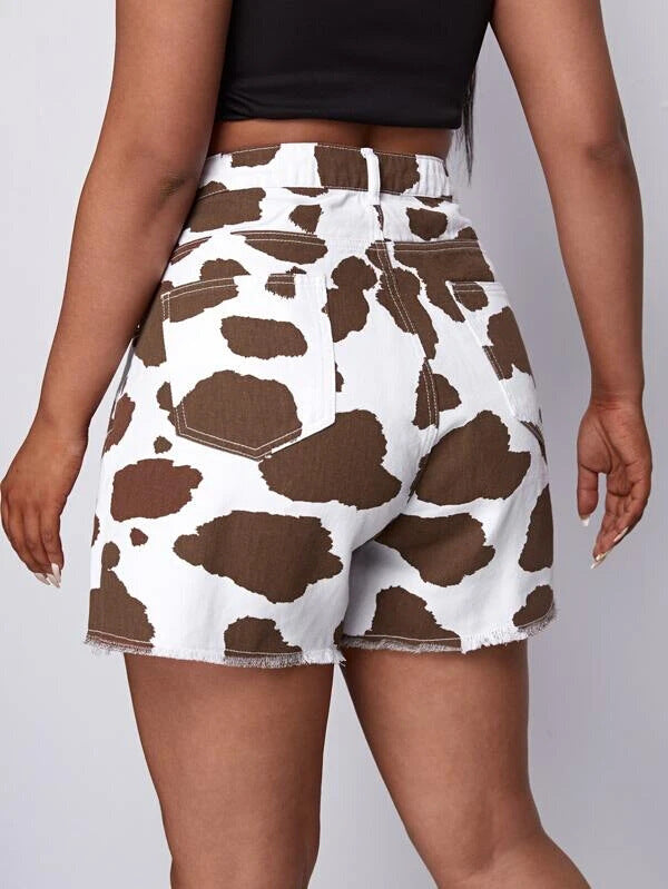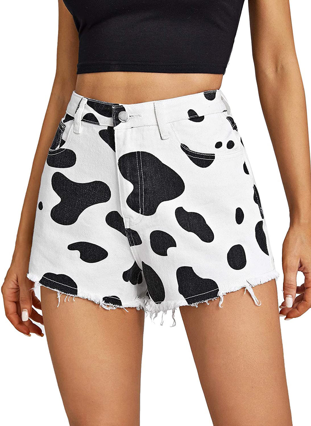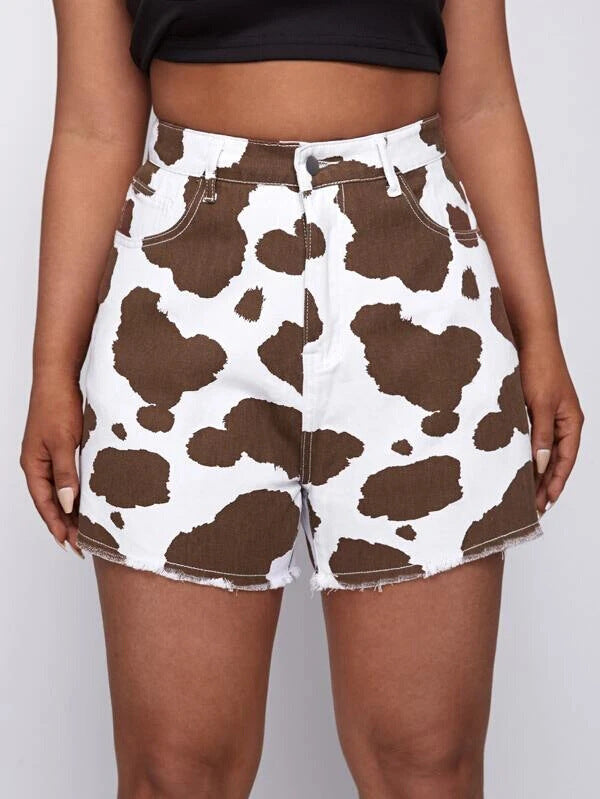 Damen-Shorts mit hoher Taille und Kuh-Print-Designs