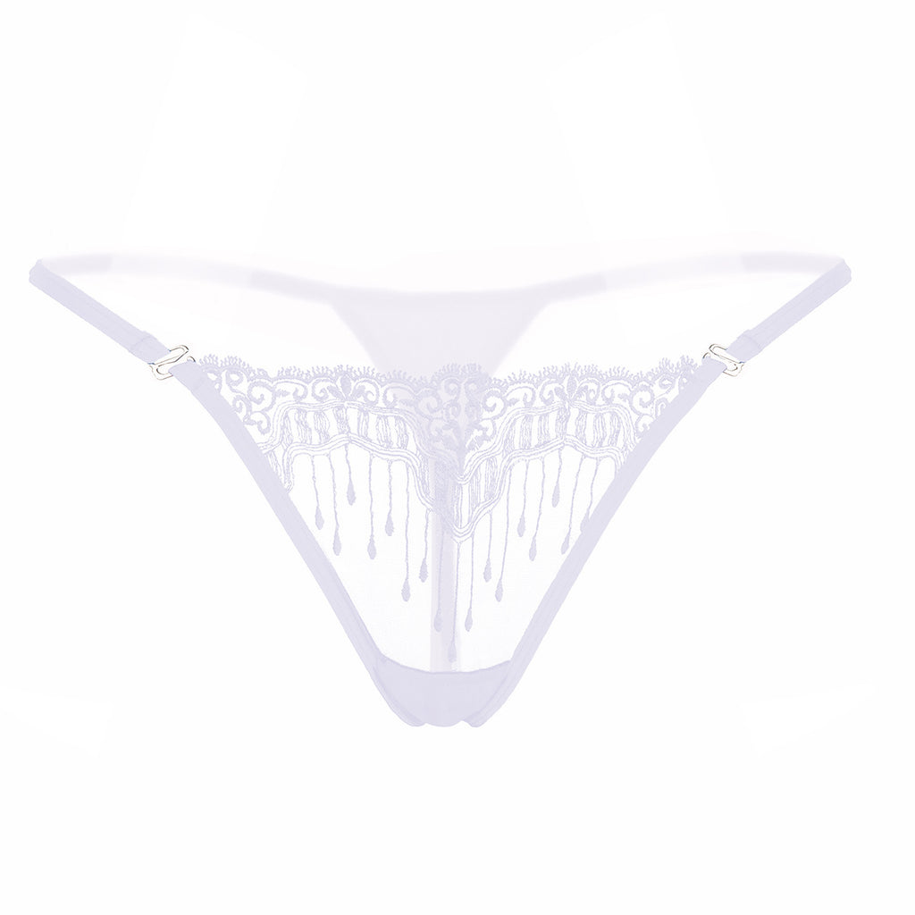 Schmücken Sie Ihre Figur in einer Art und Weise, in der Sie sich wie eine Prinzessin fühlen, in dem Jewel Drops Lace Applique Thong mit winzigen Quasten, die am Spitzenstreifen hängen.