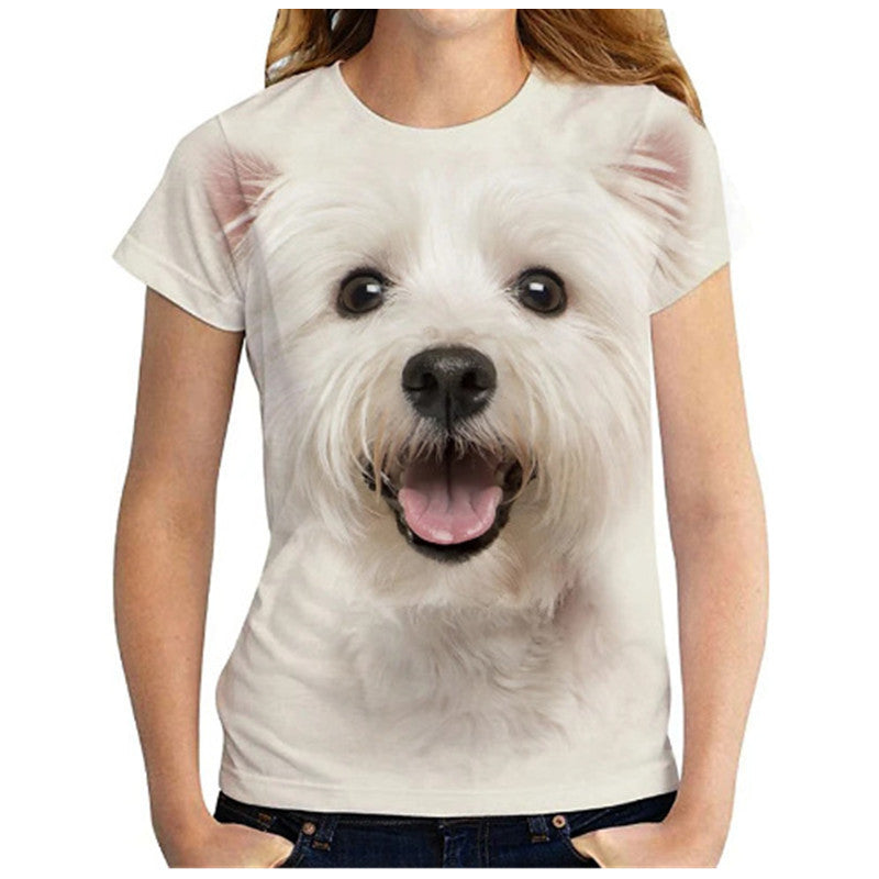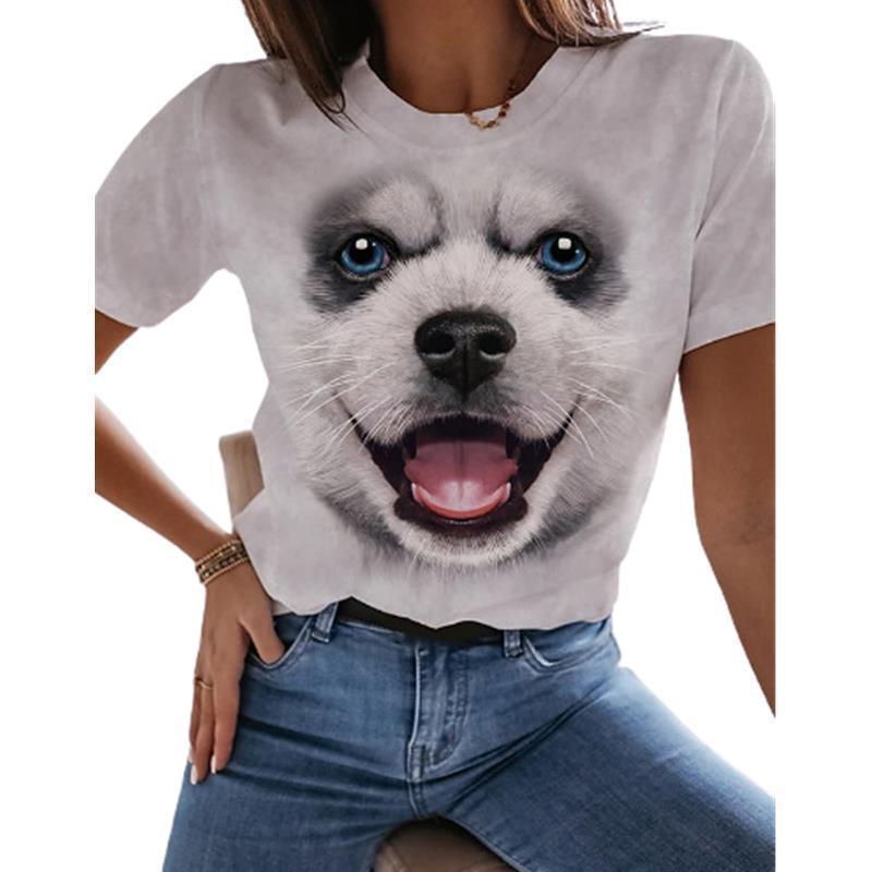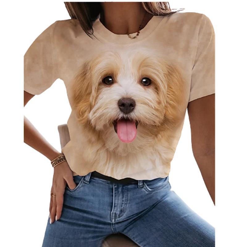 Kurzärmelige Sport-lose süße Welpen-Karikatur-Animationsdruck-Damenbekleidung