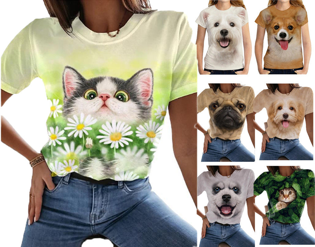 Zeigen Sie Ihre schrullige Persönlichkeit mit diesen farbenfrohen Kurzarm-T-Shirts mit Tiermotiven. Auf diesen T-Shirts finden Sie Bilder Ihrer Wahl, die von verschiedenen Arten von Szenen und Tieren reichen. Es verfügt über einen weichen Stoff.