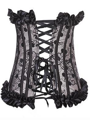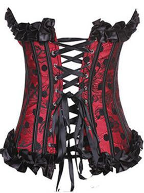 Wir haben einen Rüschenbandbesatz, einen Tupfendruck, transparente Spitze und Satinschleifen kombiniert, um ein Dessous-Korsett zu schaffen, das alles auf der Wunschliste eines glamourösen Mädchens abdeckt.