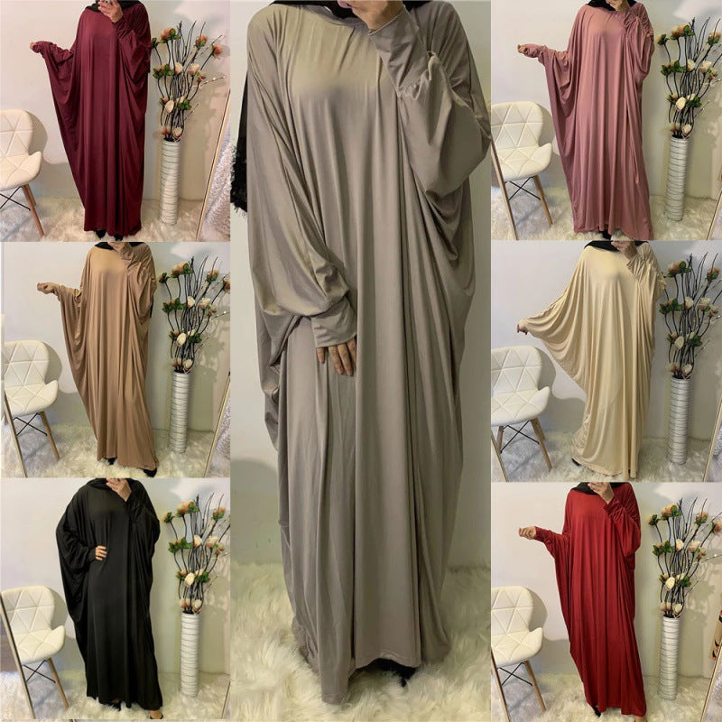 Bleiben Sie vollständig bedeckt in dem langärmligen Kleid mit Maxisaum für Damen aus seidigem Material, das sich beim Gehen bauscht. Diese locker sitzende Kleidung ist in eleganten Farben Ihrer Wahl erhältlich.