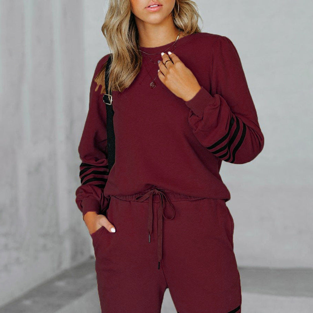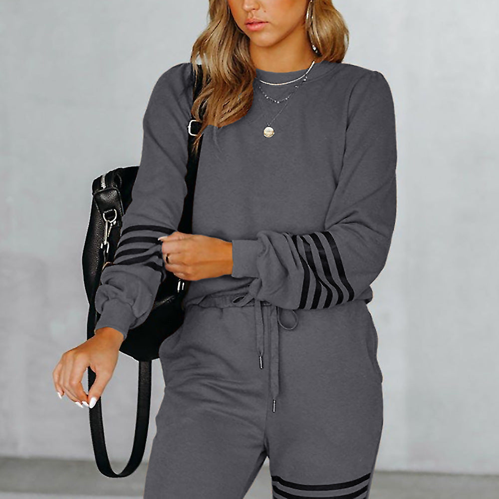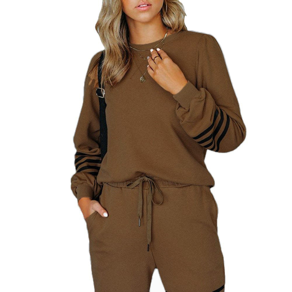 Machen Sie es sich mit diesem vielseitigen Damen-Langarm- und -Hosen-Set mit Taillenschnürung bequem, wenn Sie zu Hause faulenzen oder Besorgungen machen. Dieses Set ist locker geschnitten und dehnbar, sodass Sie sich leicht darin bewegen können.