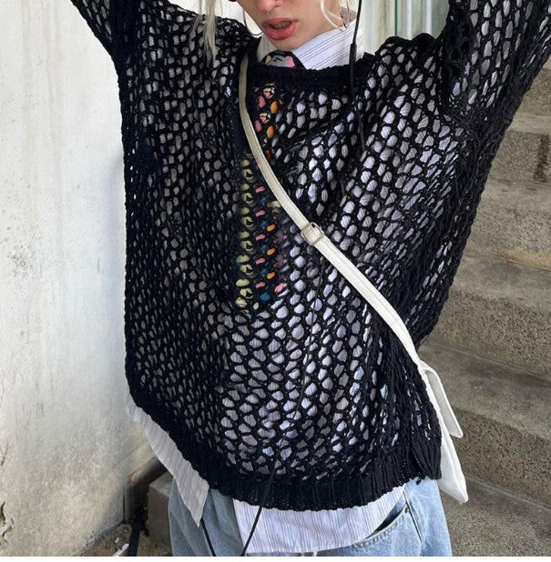 Verleihen Sie Ihren Sommer-Ensembles einen luftigen und bequemen letzten Schliff mit dem langärmligen Überwurf-Oberteil für Damen, das einen Blick auf Ihre Haut oder das darunter getragene Hemd wirft.
