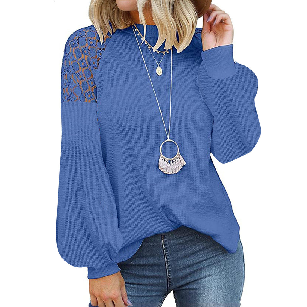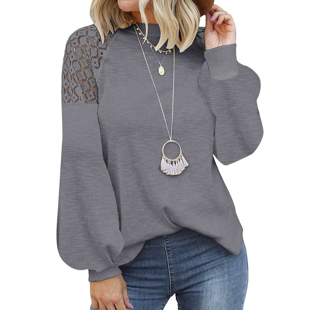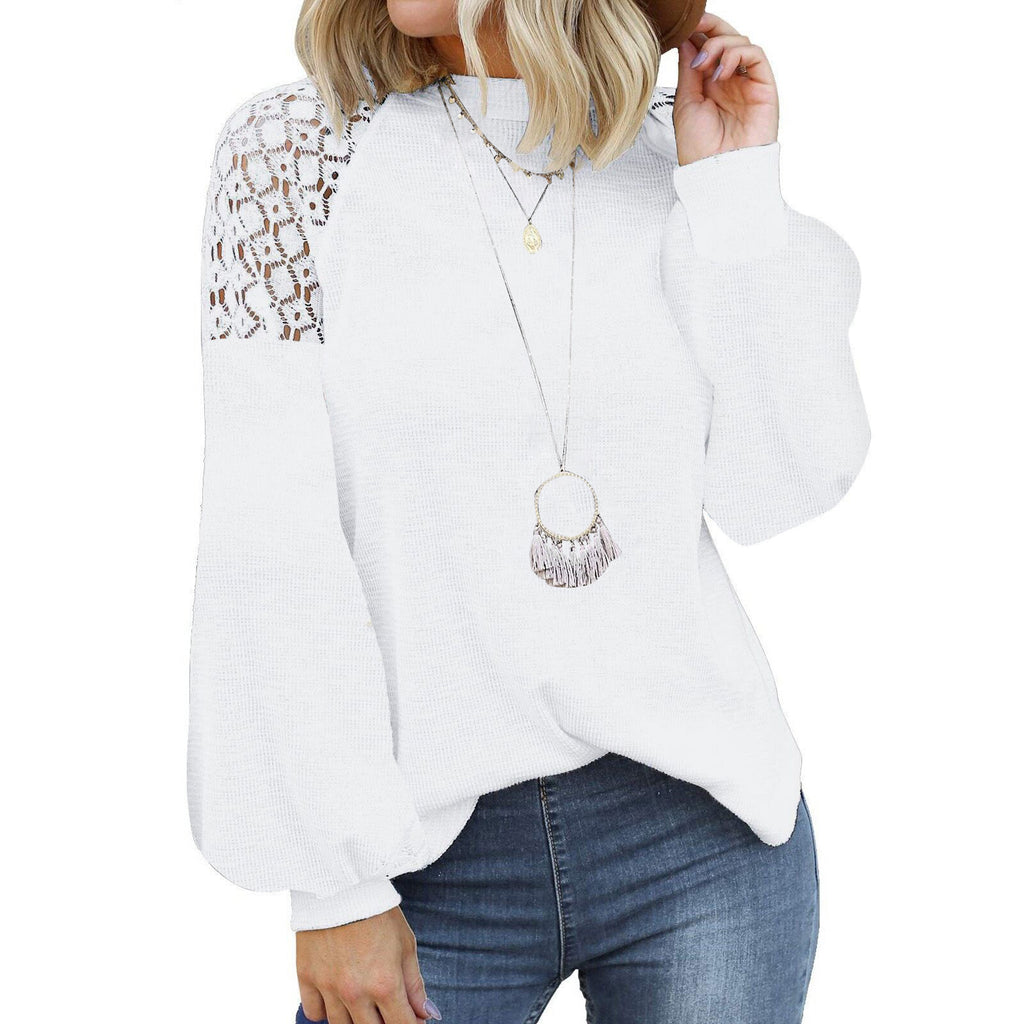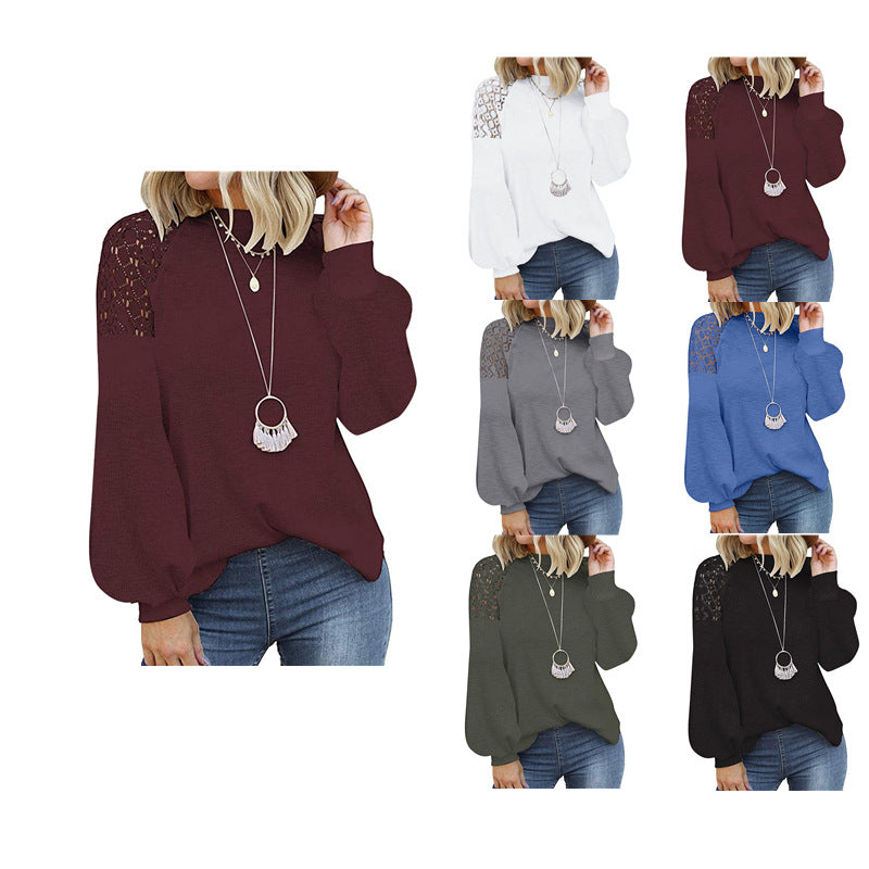 Bleiben Sie diesen Herbst warm und sehen Sie süß aus, während Sie den LongSleeved Lace Shoulder Loose Fitting Sweater tragen. Dieser Pullover hat lange, lockere Ärmel und Spitze an den Schultern.