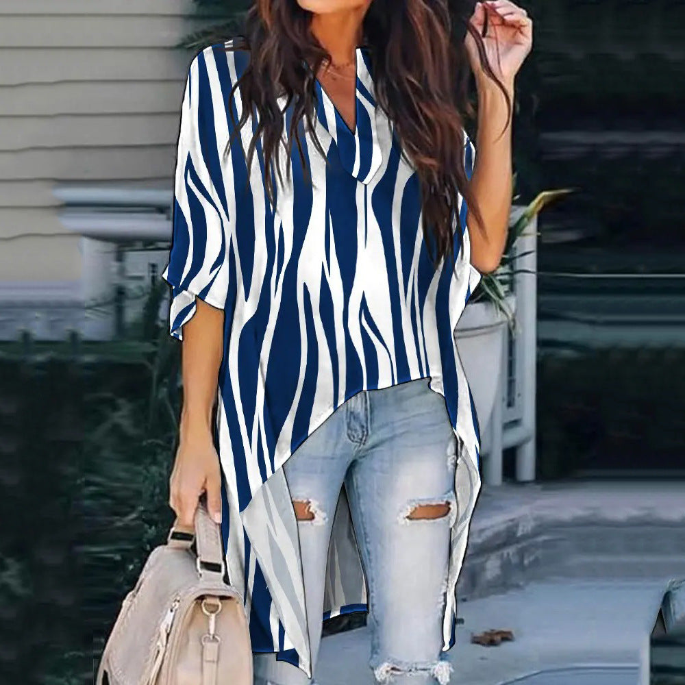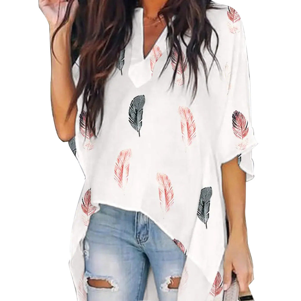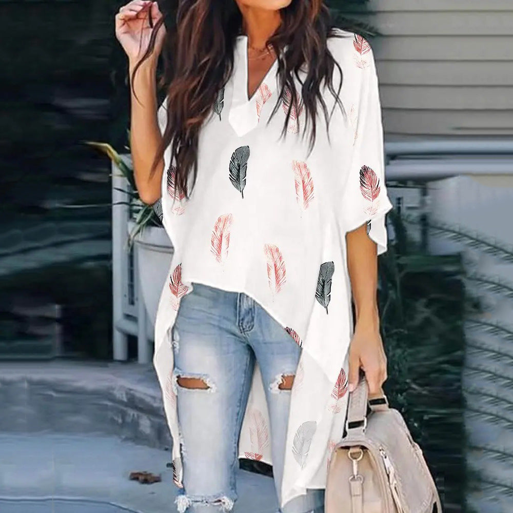 Verleihen Sie Ihrer Garderobe etwas Boho-Charme mit der locker sitzenden Damenbluse mit langem Saum und Muster. Von Federn bis hin zu Streifen – mit diesem Hemd mit V-Ausschnitt kannst du deinen Ensembles Struktur verleihen.