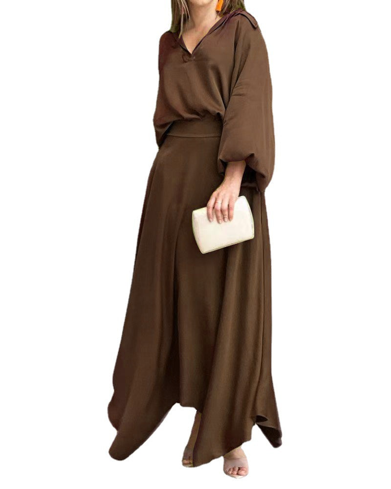 Langes Maxikleid mit Glockenärmeln und V-Ausschnitt