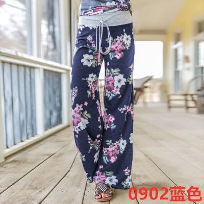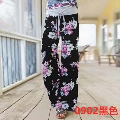Locker sitzende Hose mit elastischem Blumenmuster in der Taille