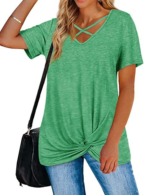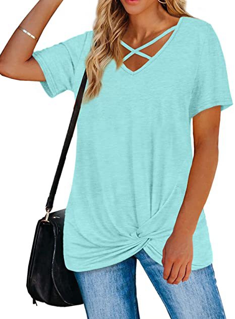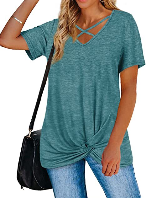 Mit dem Krawattenknoten vorne und der Riemchenbrust ist dieses locker sitzende Krawattenknoten-Shirt von StrappyWomen für immer süß und trendy. Es ist aus angenehmer Baumwolle gefertigt.