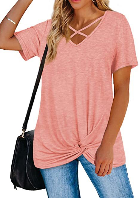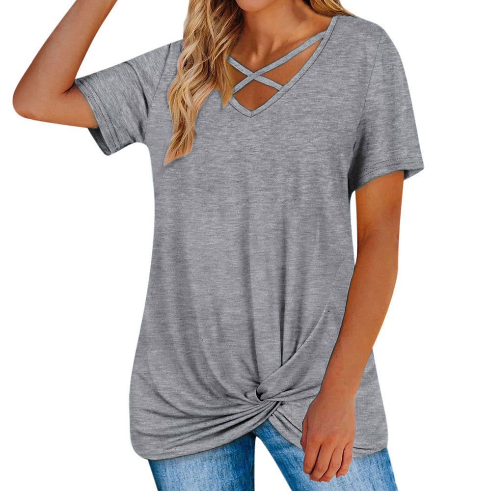 Locker sitzendes Krawattenknoten-Shirt für Damen mit Riemchen
