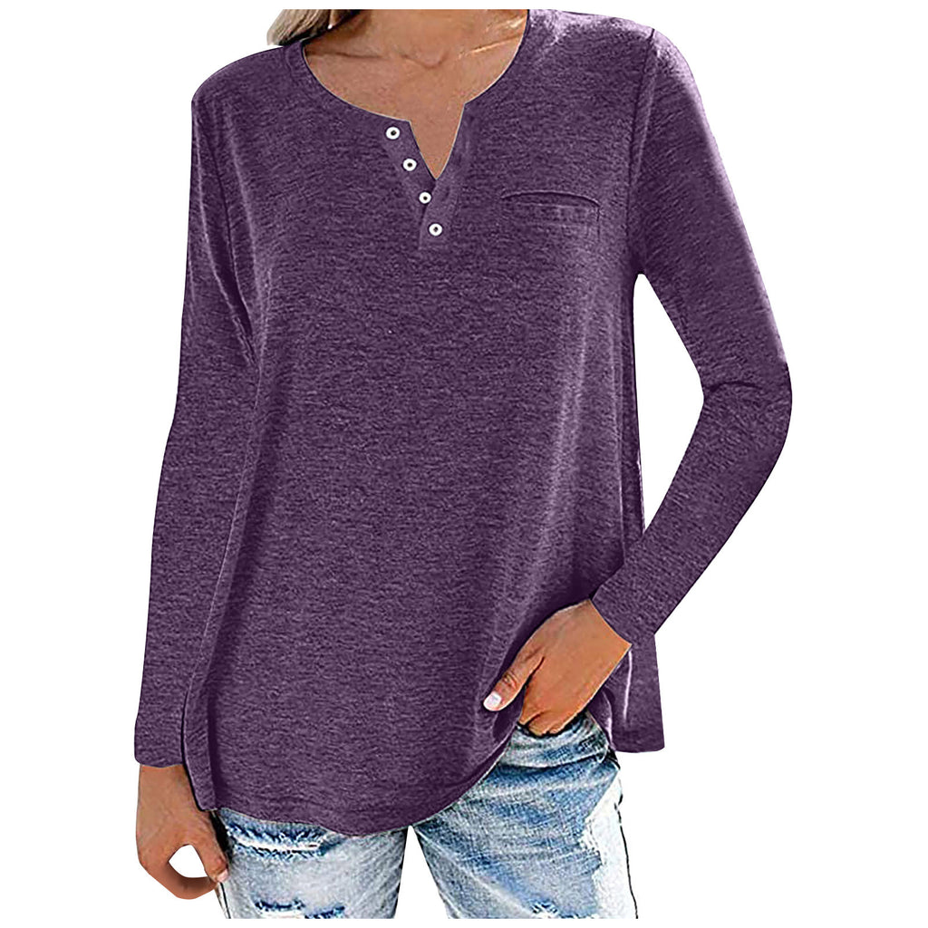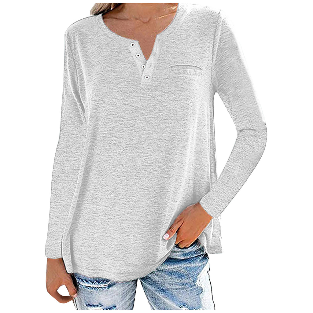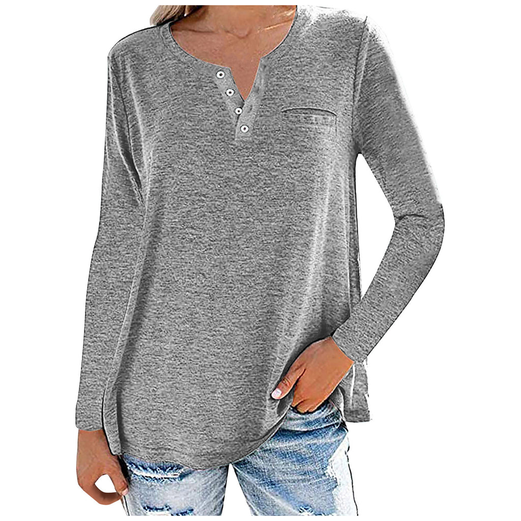 Locker sitzendes, langärmliges Oberteil mit geknöpftem Ausschnitt