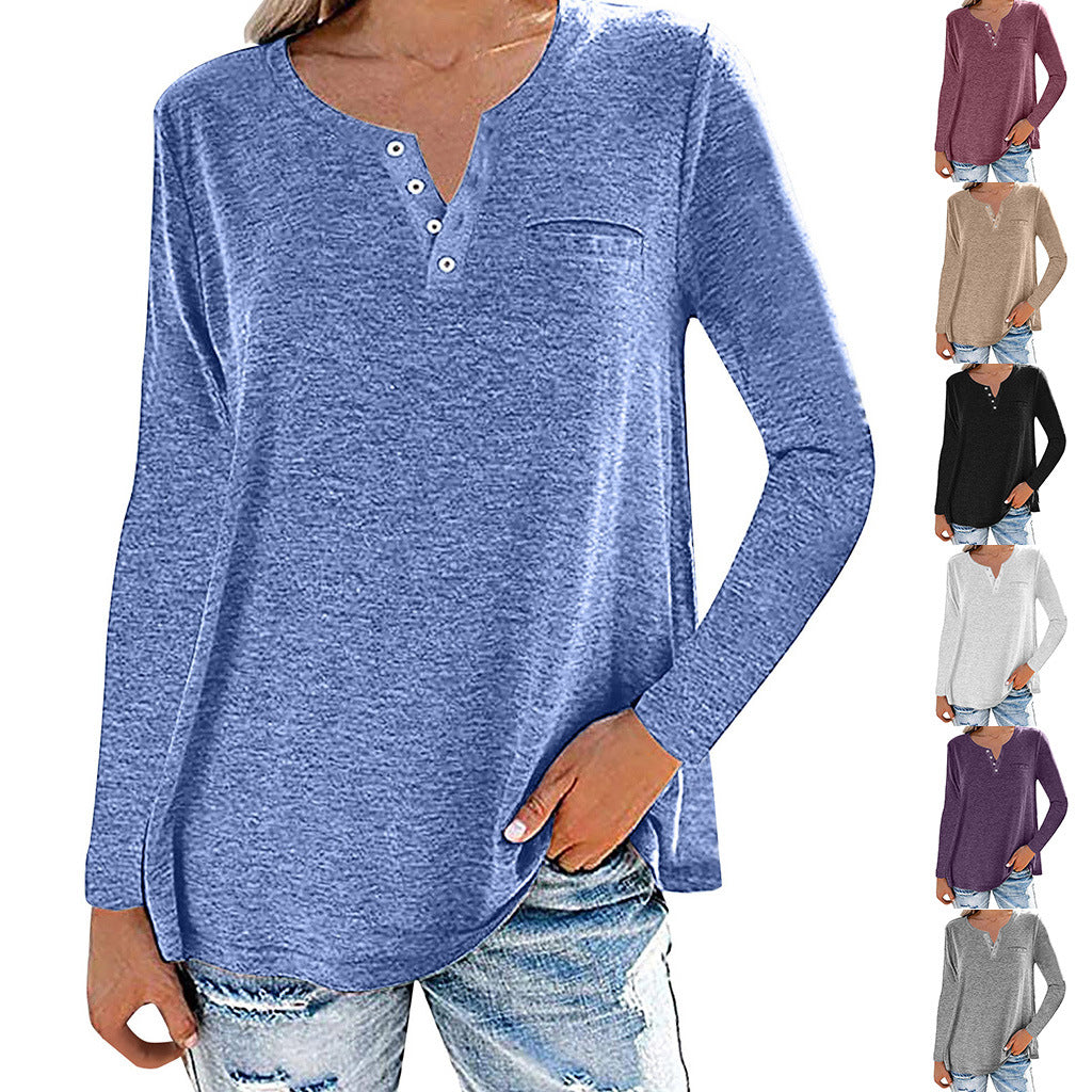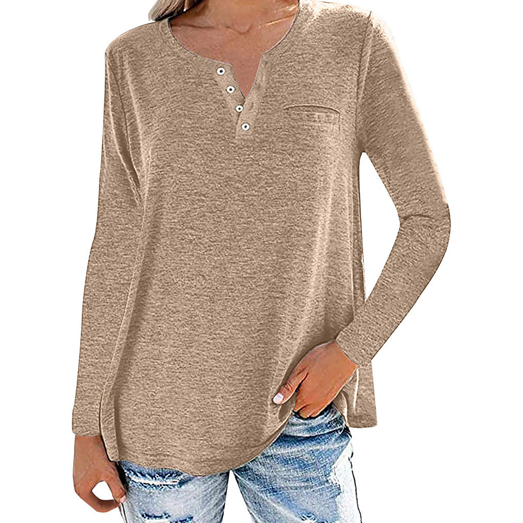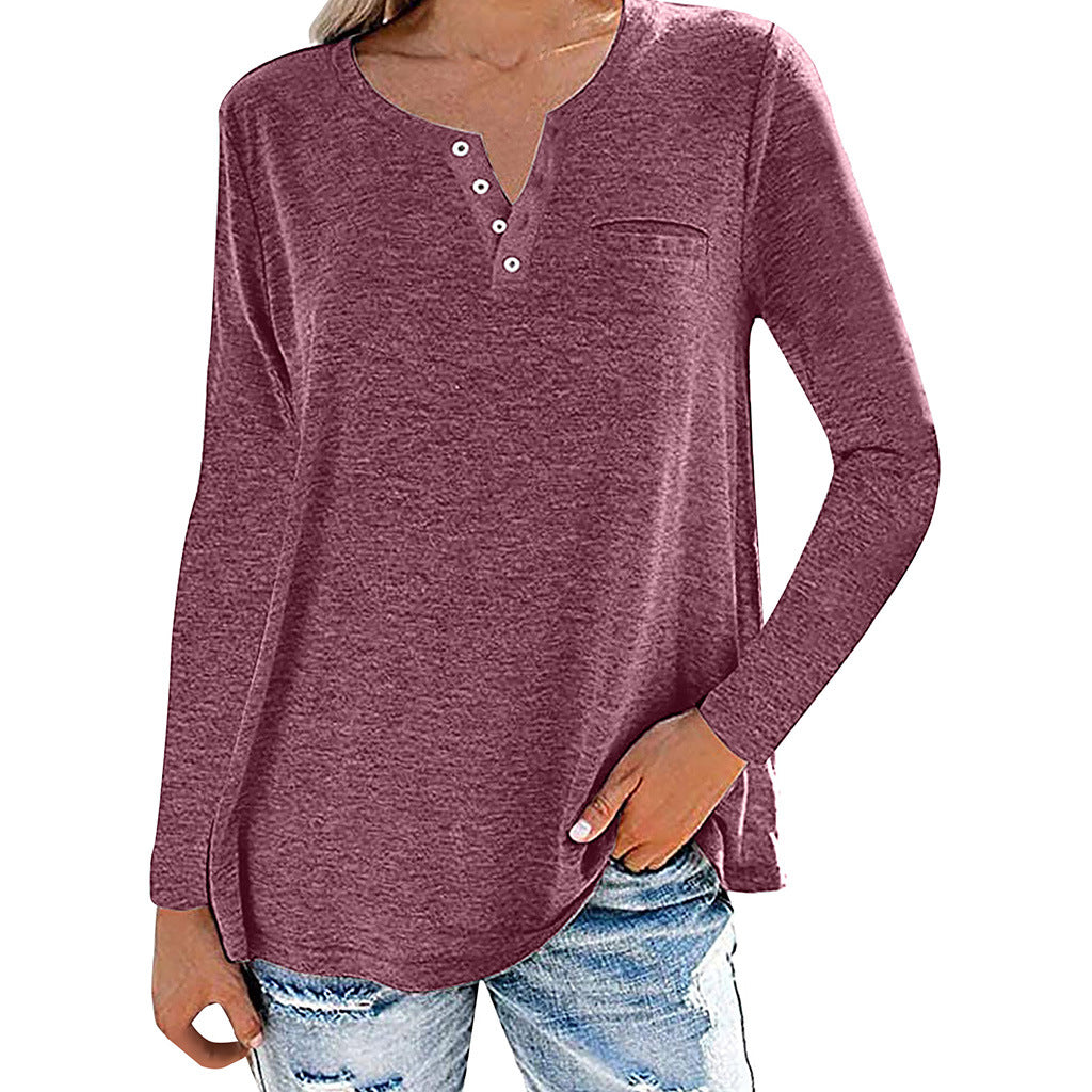 Locker sitzendes, langärmliges Oberteil mit geknöpftem Ausschnitt