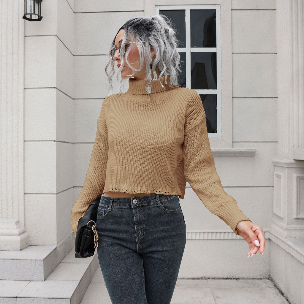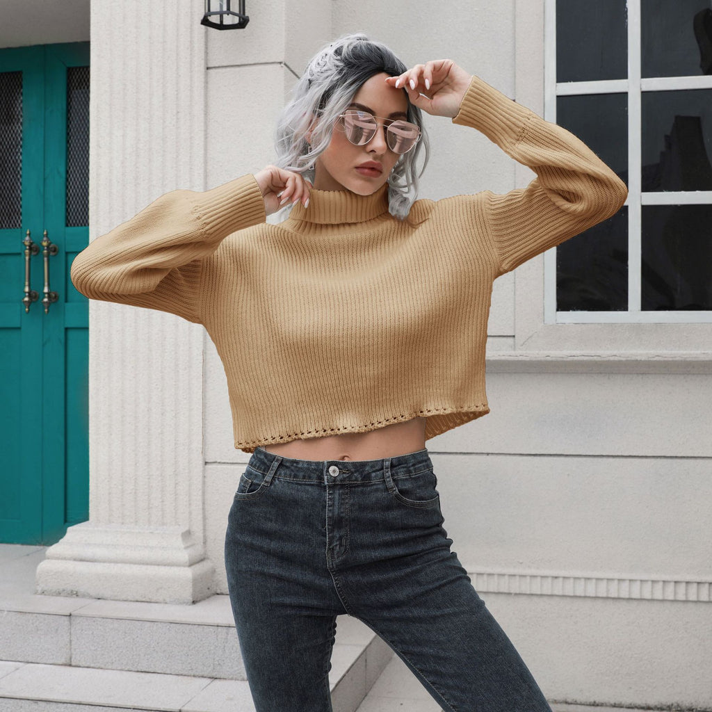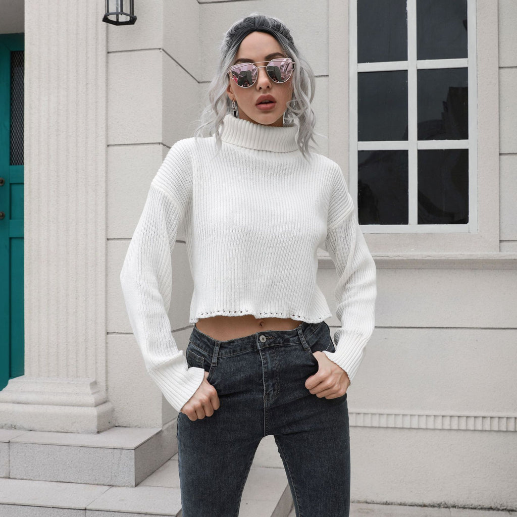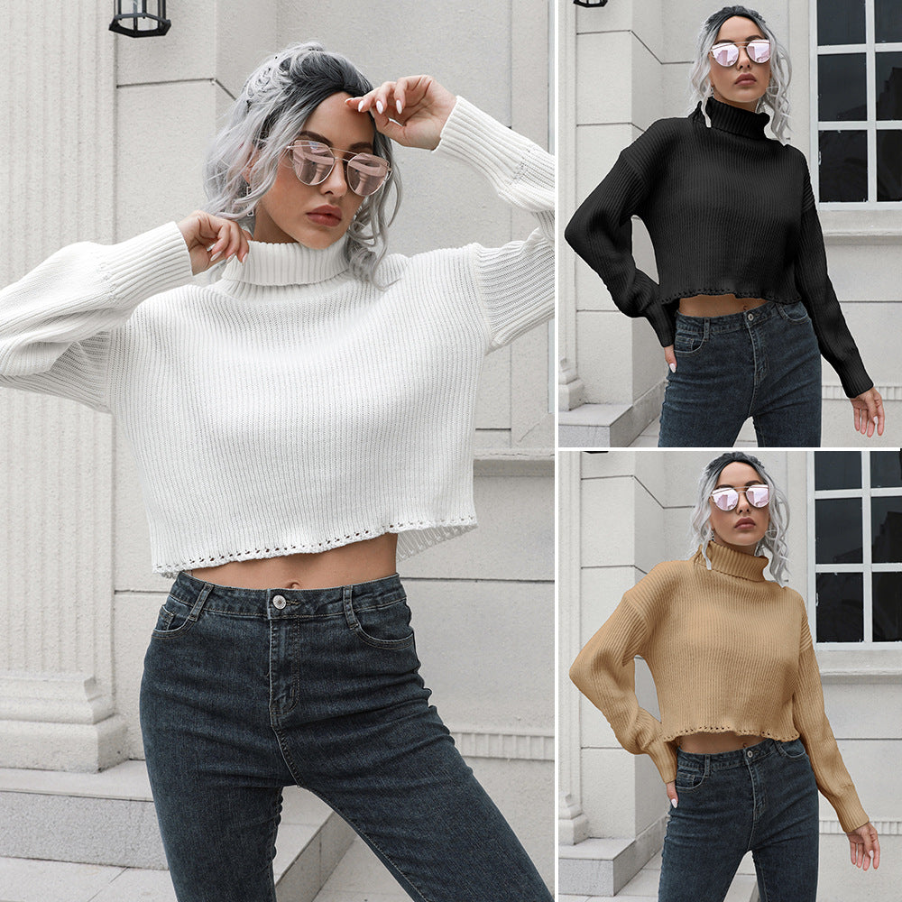 Mit dem locker sitzenden langärmligen kurzen Pullover mit Rollkragen für Damen können Sie den klassischen Look von Pullovern auf neue Höhen bringen. Es kommt in Ihrer Wahl von weißen, schwarzen oder braunen Farbtönen.