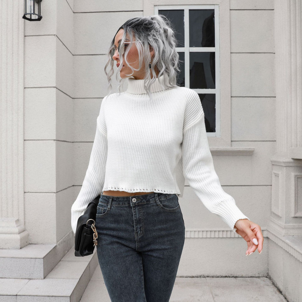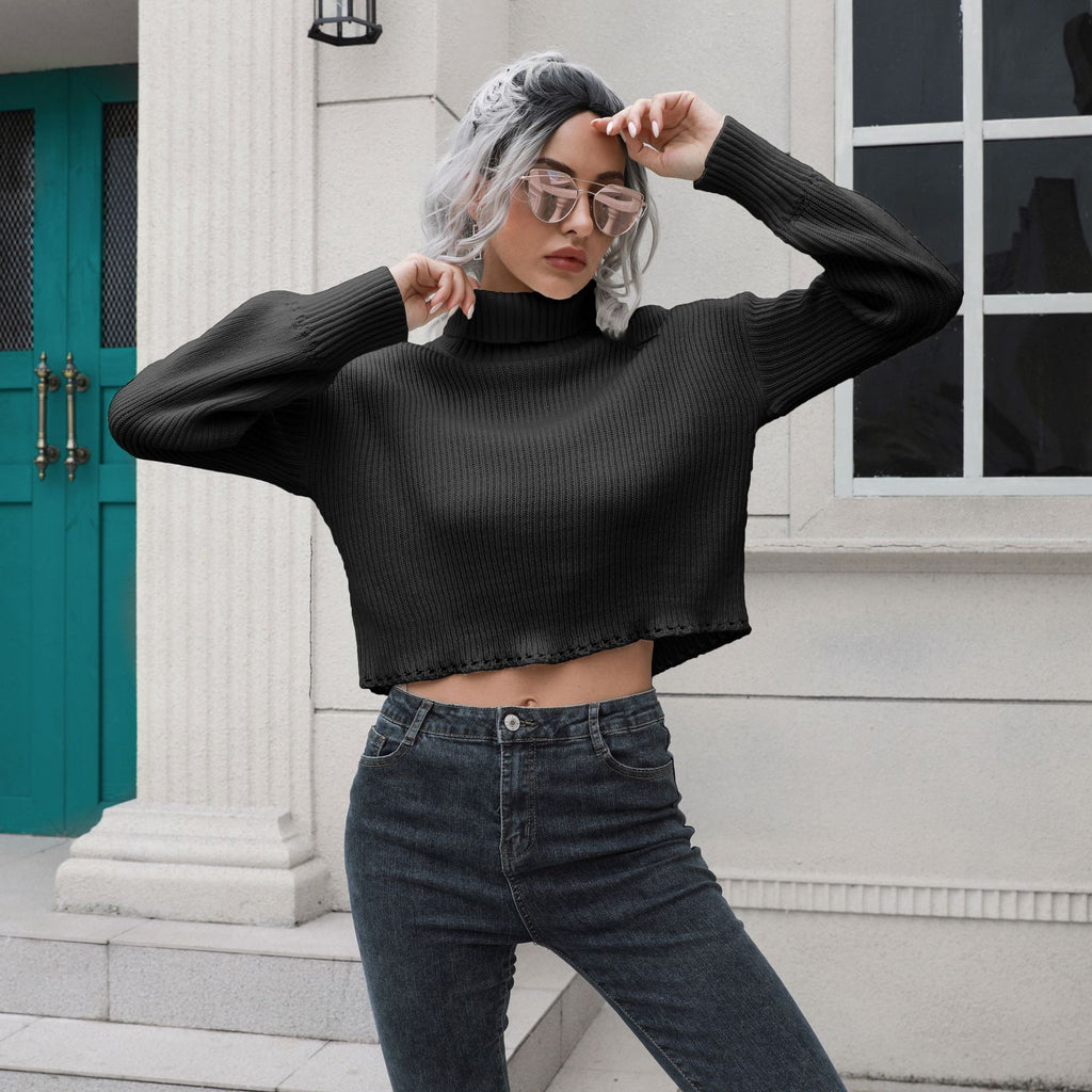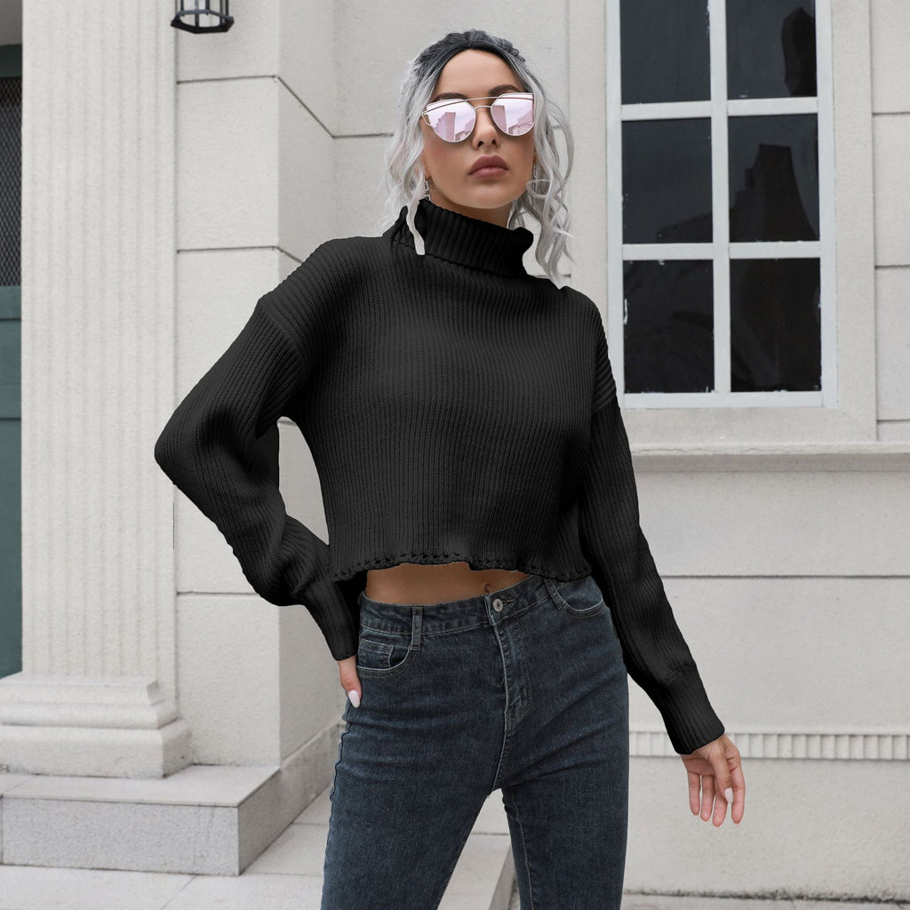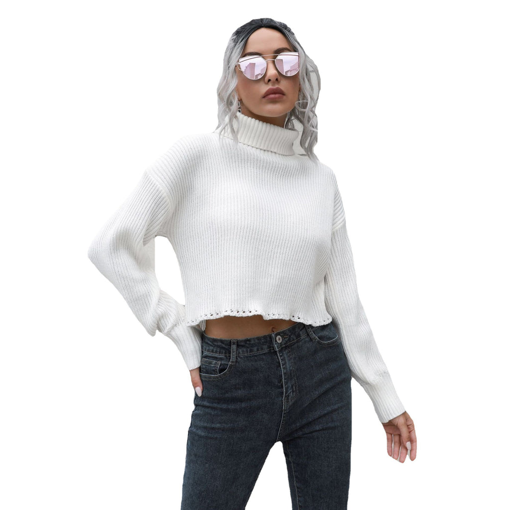 Mit dem locker sitzenden langärmligen kurzen Pullover mit Rollkragen für Damen können Sie den klassischen Look von Pullovern auf neue Höhen bringen. Es kommt in Ihrer Wahl von weißen, schwarzen oder braunen Farbtönen.