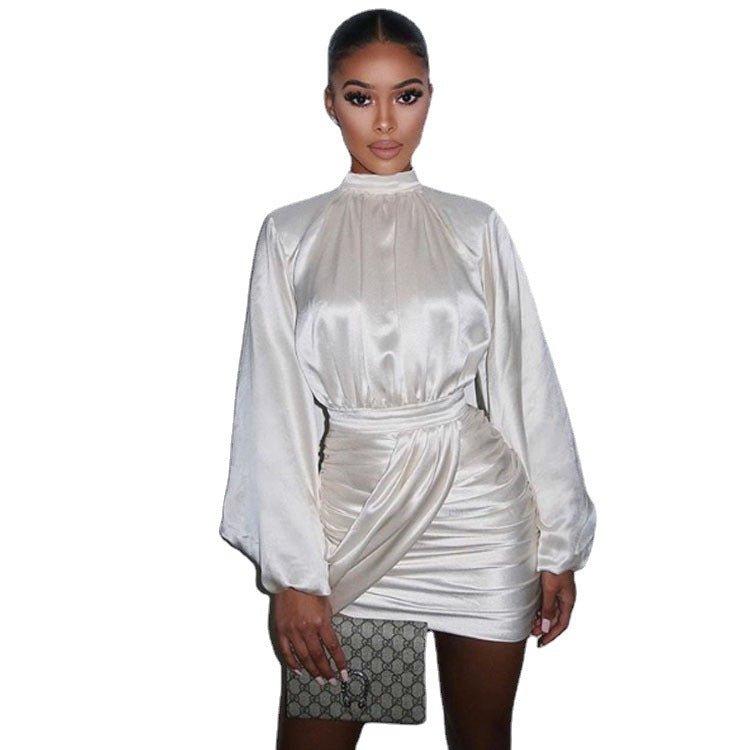 Verspottet und schick und das Long Puff Sleeve Mini -Kleid mit Scheinhals ist ein fabelhaftes Ensemble zum Dinnerpartys und Nächten in der Stadt. Es kommt in mehreren Farboptionen.