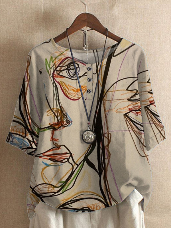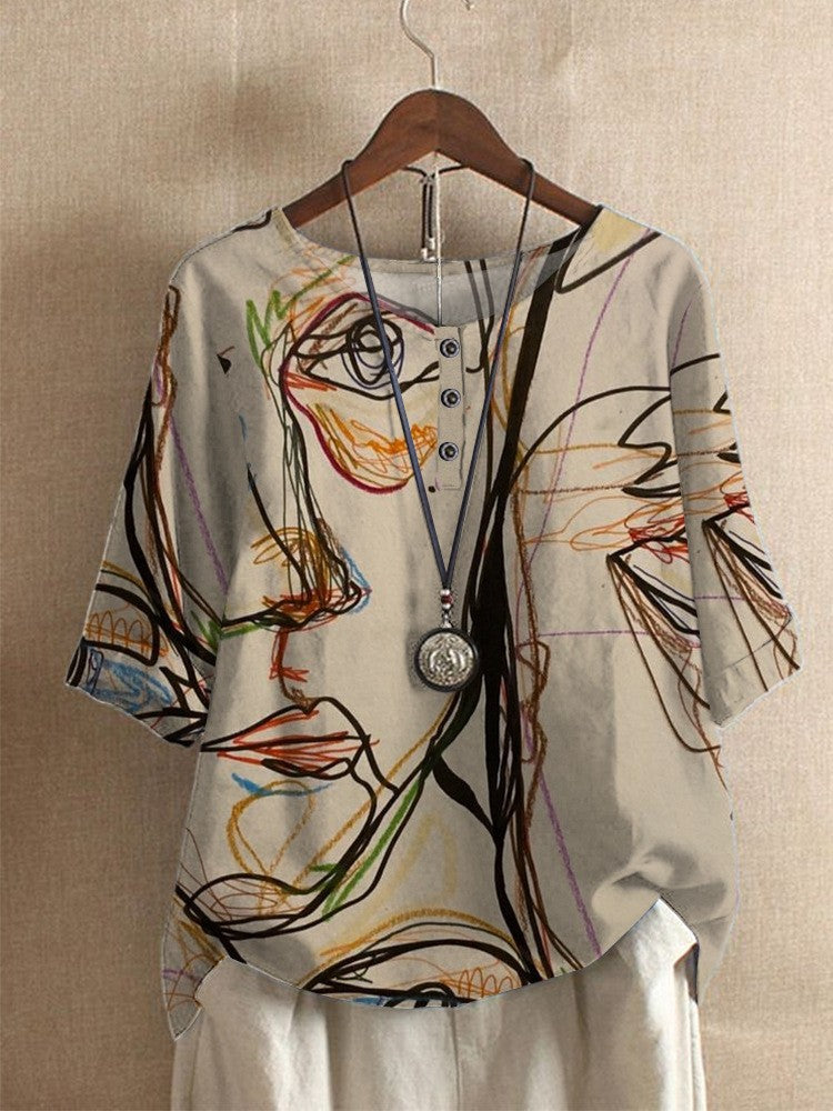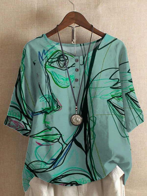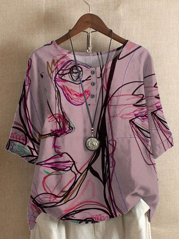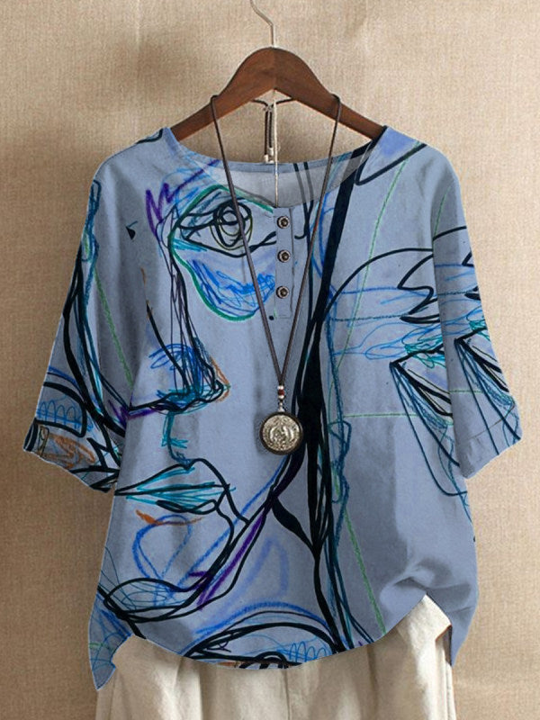 Lässiges Oberteil mit lockerem Wisteria-Print für Damen