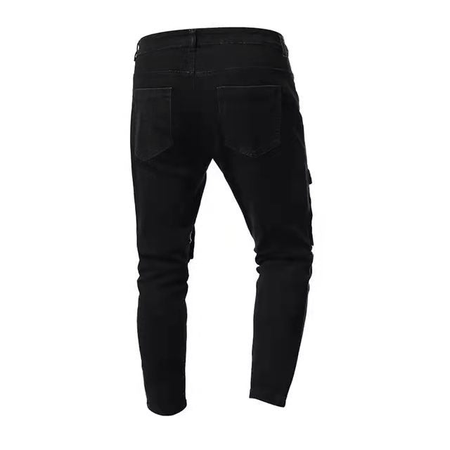 Men’s Punk Inspired Skinny Jeans with Zippers and Rips