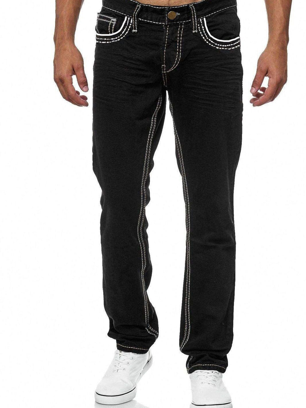 Clean up your daytime looks with the Men’s Straight Legged Skinny Jeans with Washed Effect. They come in your choice of black and light or dark denim shades.