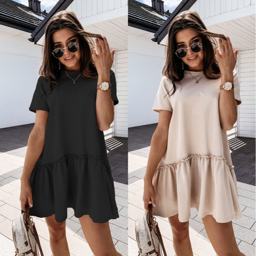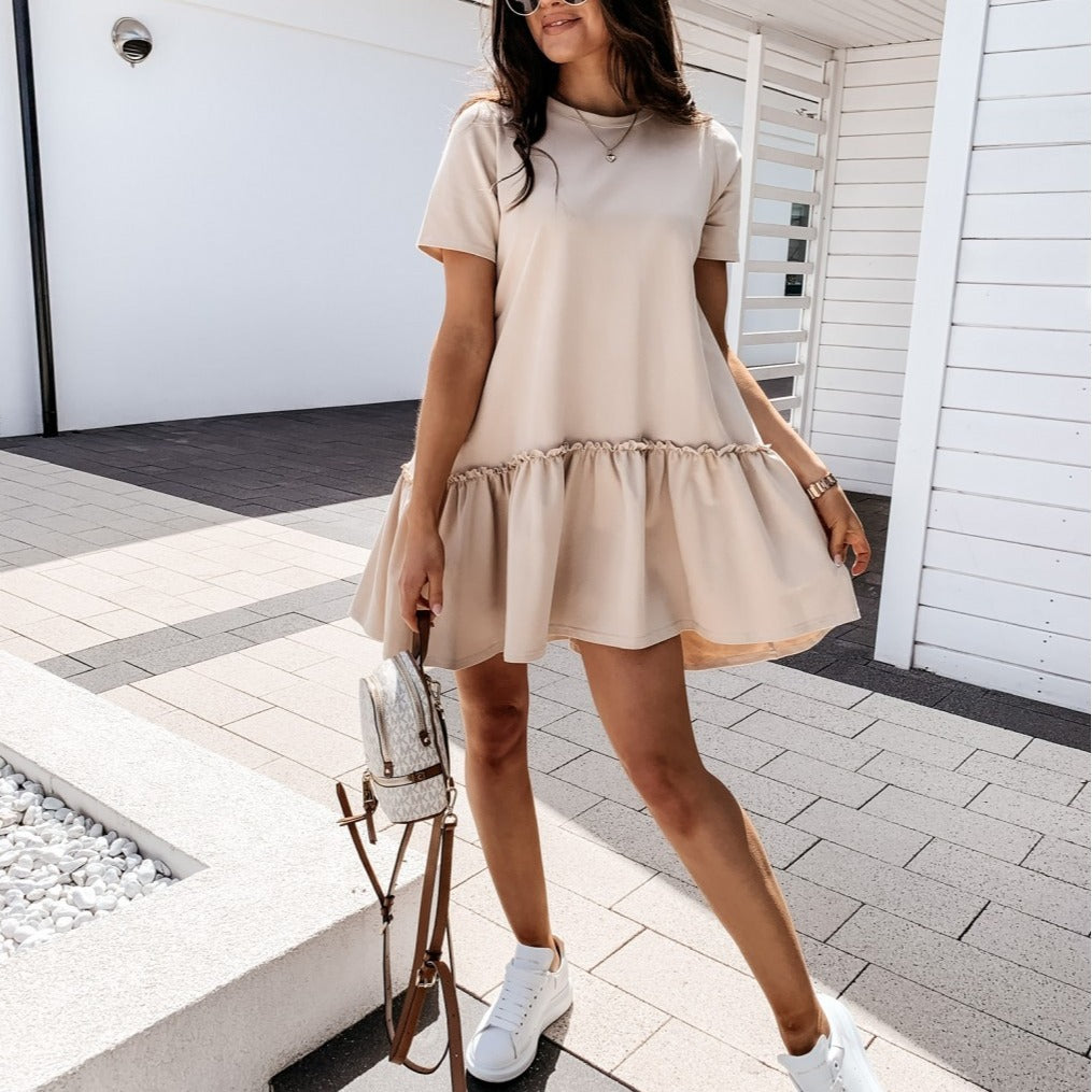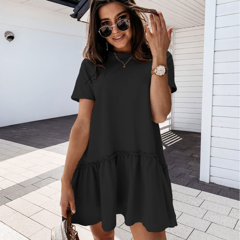 Mini Baby Doll Kleid mit kurzen Ärmeln und O-Ausschnitt